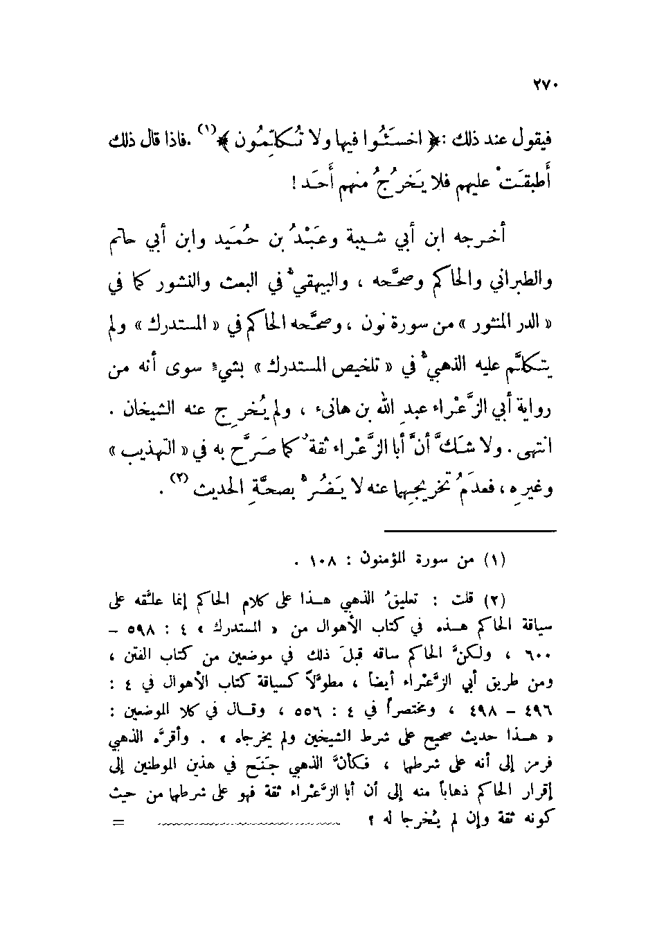 أخرجه ابن أبي شيبة وعبد بن حميد وابن أبي حاتم والطبراني والحاكم في صحيحه، والبيهقي في البعث والنشور كما في ((الدر المنثور)) من سورة نون، وصححه الحاكم في ((المستدرك)) ولم يتكلم عليه الذهبي في ((تلخيص المستدرك)) بشيء سوى أنه من رواية أبي الزعراء عبد الله بن هانئ، ولم يخرج عنه الشيخان. انتهى. ولا شك أن أبا الزعراء ثقة كما صرح به في ((التهذيب)) وغيره، فعدم تخريجهما عنه لا يضر بصحة الحديث.