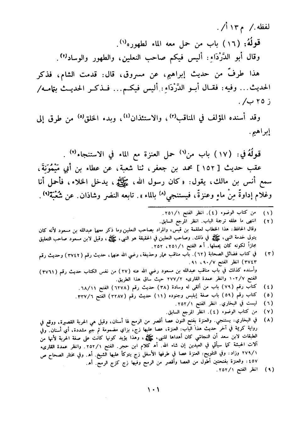 هَذَا طرف من حَدِيث إِبْرَاهِيم عَن مَسْرُوق قَالَ قدمت الشَّام فَذكر الحَدِيث وَفِيه فَقَالَ أَبُو الدَّرْدَاء أَلَيْسَ فِيكُم فَذكر الحَدِيث بِتَمَامِهِ ز 25 ب