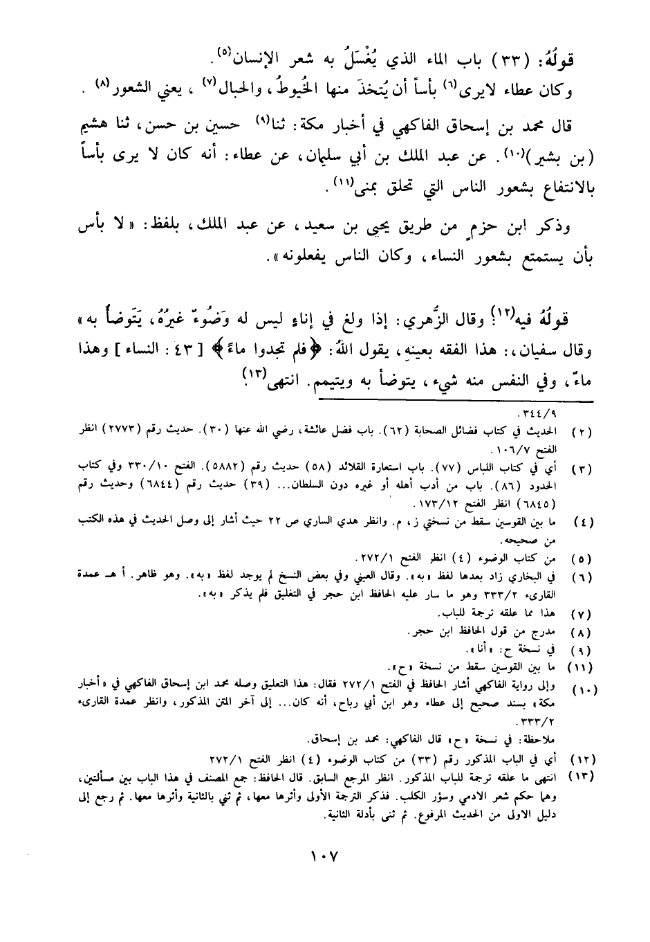 قَالَ مُحَمَّد بن إِسْحَاق الفاكهي فِي أَخْبَار مَكَّة ثَنَا حُسَيْن بن حسن ثَنَا هشيم (بن بشير) عَن عبد الْملك بن أبي سُلَيْمَان عَن عَطاء أَنه كَانَ لَا يرى بَأْسا بِالِانْتِفَاعِ بشعور النَّاس الَّتِي تحلق بمنى
