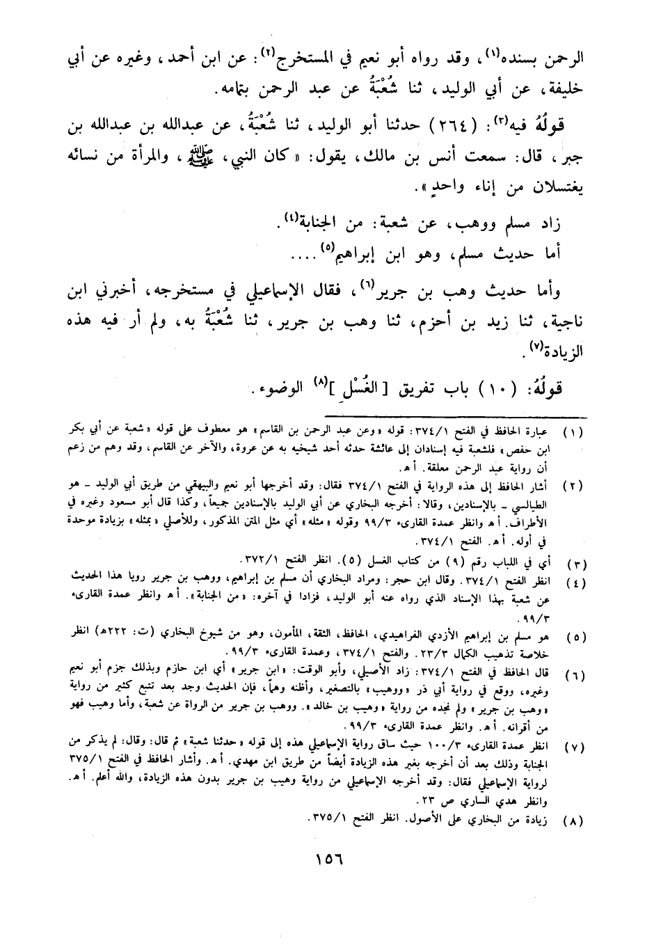 زَاد مُسلم ووهب عَن شُعْبَة من الْجَنَابَة