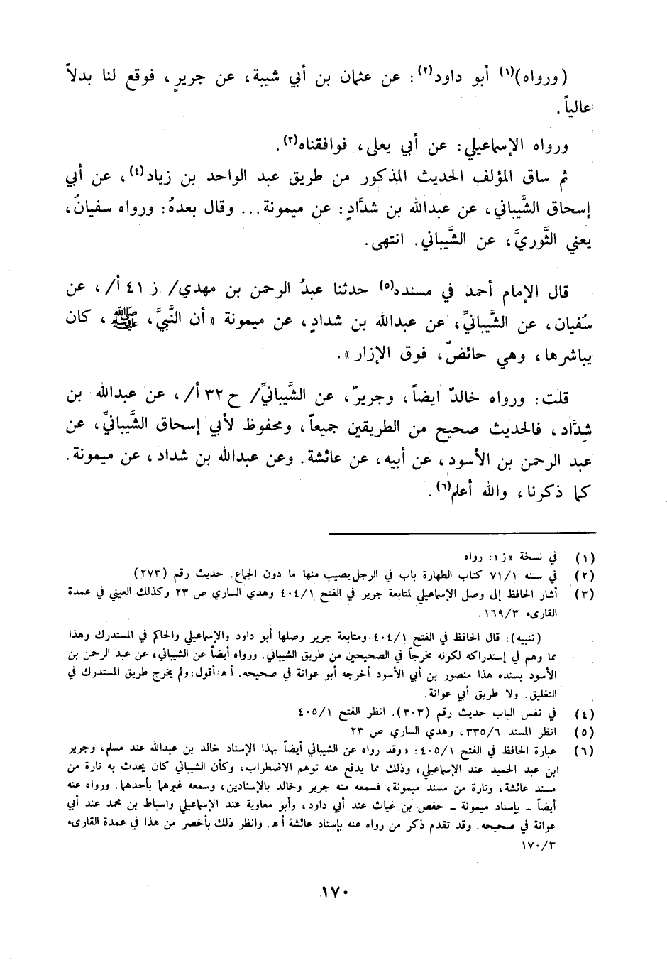 قلت وَرَوَاهُ خَالِد أَيْضا وَجَرِير عَن الشَّيْبَانِيّ ح 32 أعَنْ عَبْدِ اللَّهِ بْنِ شَدَّادٍ فَالْحَدِيث صَحِيح من الطَّرِيقَيْنِ جَمِيعًا ومحفوظ لأبي إِسْحَاق الشَّيْبَانِيّ عَن عَبْدُ الرَّحْمَنِ بْنُ الأَسْوَدِ عَنْ أَبِيه عَن عَائِشَة وَعَن عبد اللَّهِ بْنِ شَدَّادٍ عَنْ مَيْمُونَةَ كَمَا ذكرنَا وَالله أعلم