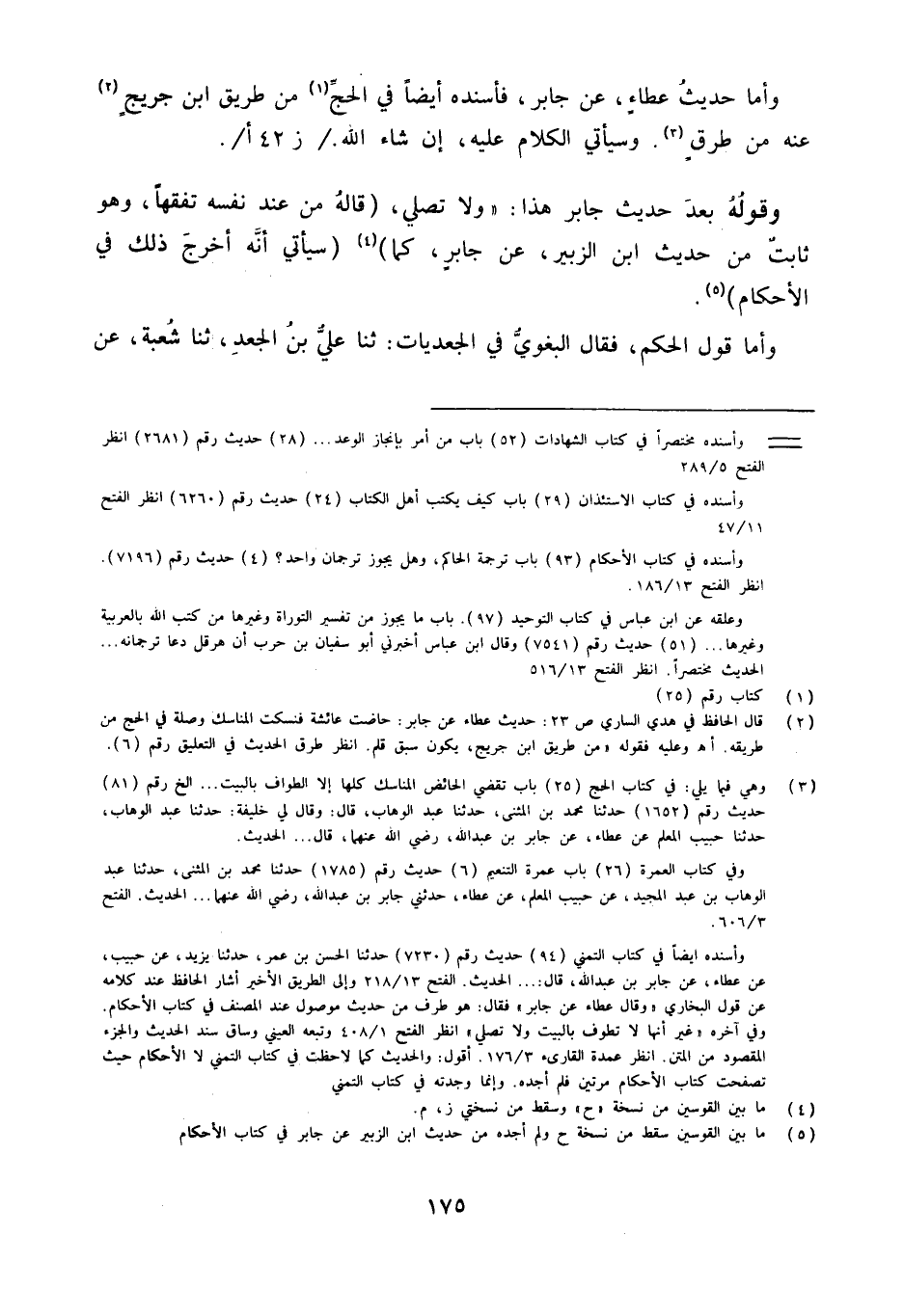 وَأما حَدِيث عَطاء عَن جَابر فأسنده أَيْضا فِي الْحَج من طَرِيق ابْن جريج عَنهُ من طرق وَسَيَأْتِي الْكَلَام عَلَيْهِ إِن شَاءَ الله ز 42 أ