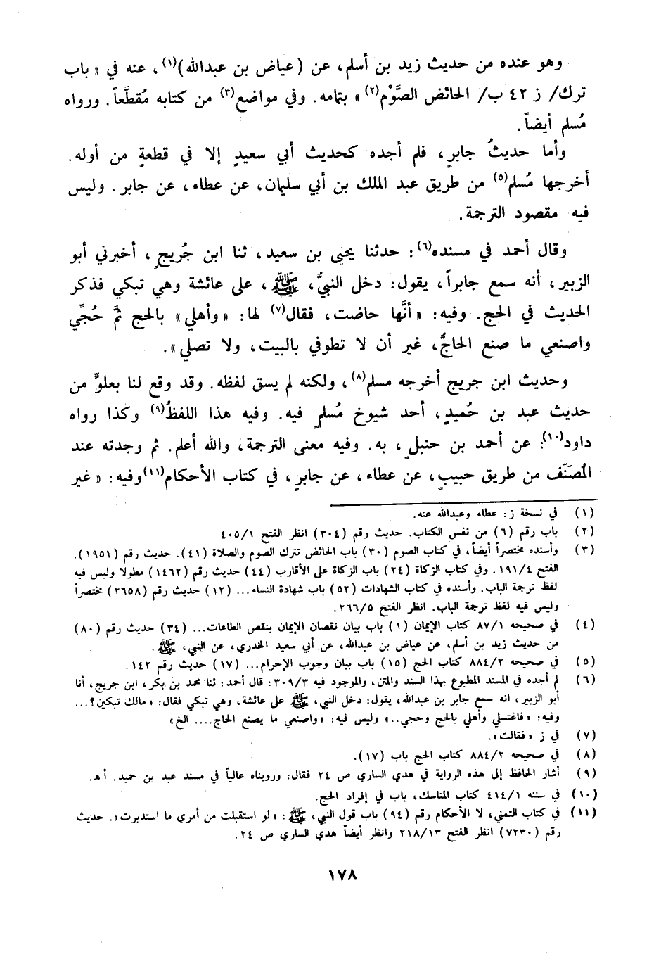 وَقَالَ أَحْمد فِي مُسْنده حَدَّثنا يَحْيَى بْنُ سَعِيدٍ ثَنَا ابْنُ جُرَيْجٍ أَخْبَرَنِي أَبُو الزُّبَيْرِ أَنَّهُ سَمِعَ جَابِرًا يَقُولُ دَخَلَ النَّبِيُّ صَلَّى اللَّهُ عَلَيْهِ وَسَلَّمَ عَلَى عَائِشَةَ وَهِيَ تَبْكِي فَذَكَرَ الْحَدِيثَ فِي الْحَجِّ وَفِيهِ ((أَنَّهَا حَاضَتْ فَقَالَ لَهَا ((وَأَهِلِّي)) بِالْحَجِّ ثُمَّ حجي واصنعي مَا صنع الْحجَّاج غَيْرَ أَنْ لَا تَطُوفِي بِالْبَيْتِ وَلا تُصَلِّي