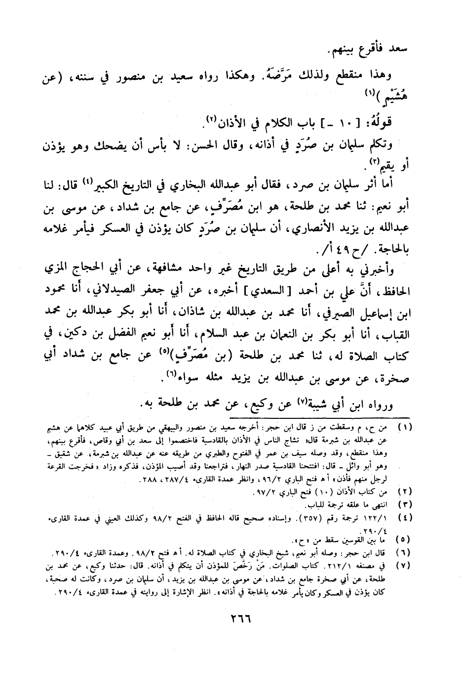 أما أثر سُلَيْمَان بن صرد فَقَالَ أَبُو عبد الله البُخَارِيّ فِي التَّارِيخ الْكَبِير قَالَ لَنَا أَبُو نُعَيْمٍ ثَنَا مُحَمَّدُ بْنُ طَلْحَةَ هُوَ ابْنُ مُصَرِّفٍ عَنْ جَامِعِ بْنِ شَدَّادٍ عَنْ مُوسَى بْنِ عَبْدِ اللَّهِ بْنِ يَزِيدَ الأَنْصَارِيِّ أَنَّ سُلَيْمَانَ بْنَ صُرَدَ كَانَ يُؤَذِّنُ فِي الْعَسْكَر فيأمر غُلَامه بِالْحَاجةِ ح 49 أ