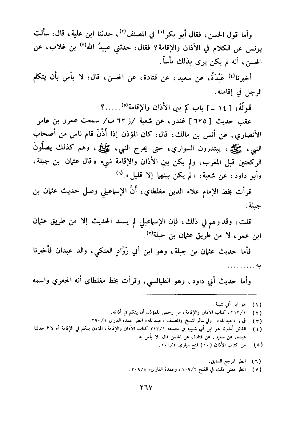 وَأما قَول الْحسن فَقَالَ أَبُو بكر فِي المُصَنّف حَدَّثنا ابْن علية قَالَ سَأَلت يُونُس عَن الْكَلَام فِي الْأَذَان وَالْإِقَامَة فَقَالَ حَدَّثَني عبيد الله بن غلاب عَن الْحسن أَنه لم يكن يرى بذلك بَأْسا