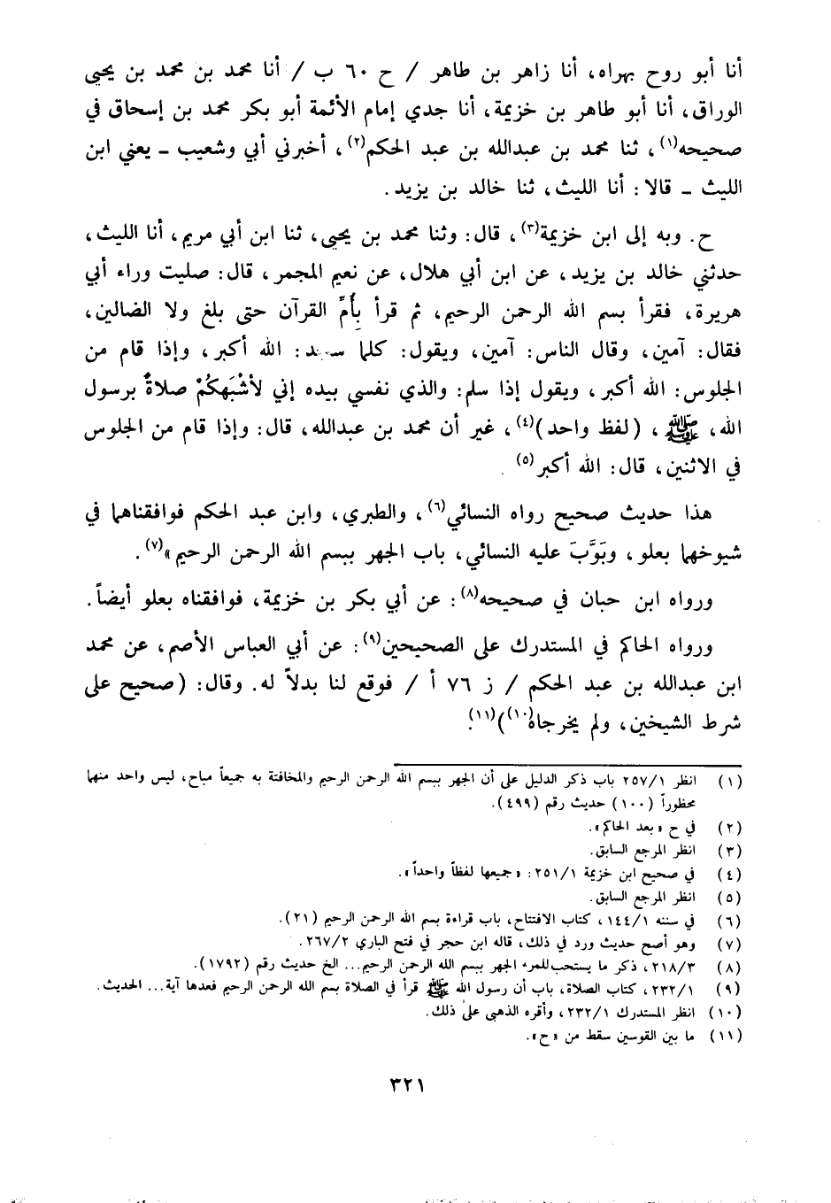 أَنا أَبُو رَوْحٍ بِهَرَاةَ أَنا زَاهِر بن طَاهِر ح 60 ب أَنا مُحَمَّدُ بْنُ مُحَمَّدِ بْنِ يَحْيَى الْوَرَّاقُ أَنا أَبُو طَاهِرِ بن خُزَيْمَة أَنا جدي إِمَام الأَئِمَّةِ أَبُو بَكْرٍ مُحَمَّدُ بْنُ إِسْحَاقَ فِي صَحِيحِهِ ثَنَا مُحَمَّدُ بن عبد الله بن عبد الْحَكَمِ أَخْبَرَنِي أَبِي وَشُعَيْبٌ يَعْنِي ابْنَ اللَّيْثِ قَالا أَنا اللَّيْثُ ثَنَا خَالِد بن يزِيد