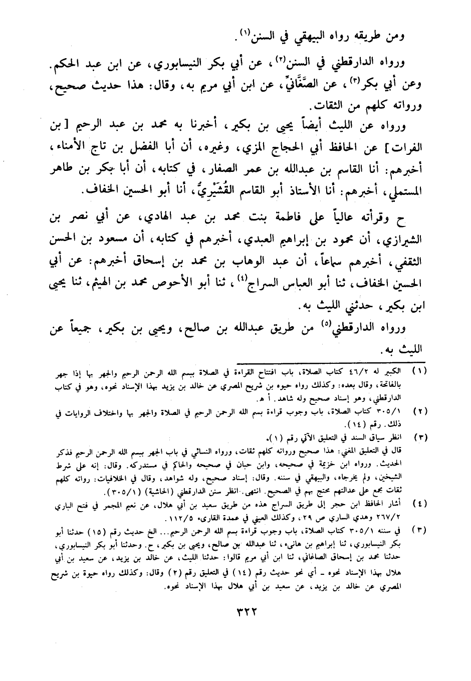 ح وَقَرَأْتُهُ عَالِيًا عَلَى فَاطِمَةَ بِنْتِ مُحَمَّدِ بْنِ عَبْدِ الْهَادِي عَن أبي نصر بن الشبرازي أَن مَحْمُود بن إِبْرَاهِيم الْعَبْدي أخْبرهُم فِي كِتَابه أَن مَسْعُود بْنَ الْحَسَنِ الثَّقَفِيَّ أَخْبَرَهُمْ سَمَاعًا أَن عبد الْوَهَّاب بن مُحَمَّد بن إِسْحَاق أخْبرهُم عَن أبي الْحُسَيْن الْخفاف ثَنَا أَبُو الْعَبَّاس السراج ثَنَا أَبُو الْأَحْوَص مُحَمَّد بن الْهَيْثَم ثَنَا يحيى ابْن بكير حَدَّثَني اللَّيْث بِهِ
