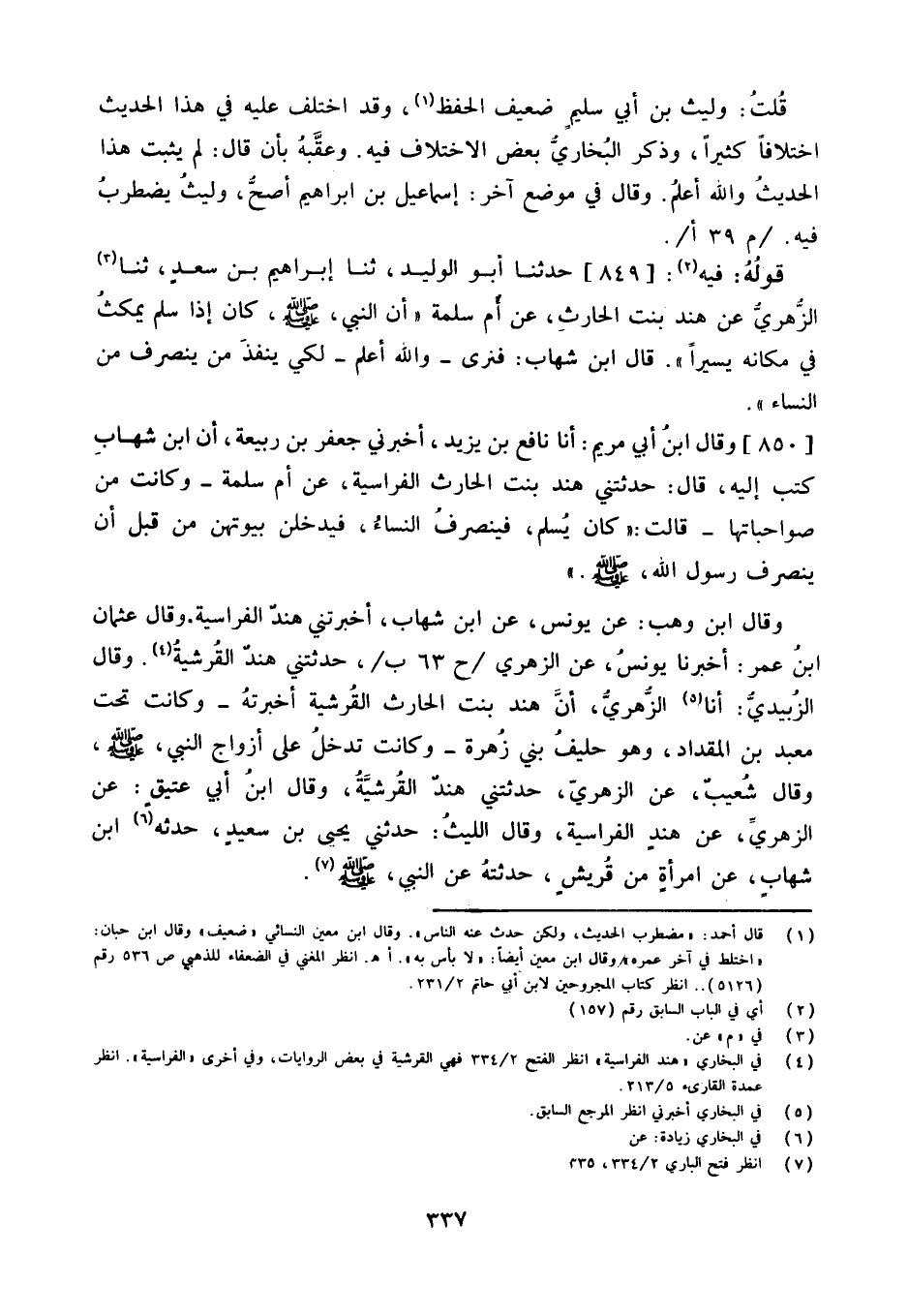 وَقَالَ ابْن وهب عَنْ يُونُسَ عَنِ ابْنِ شِهَابٍ أَخْبَرتنِي هِنْد الفراسية وَقَالَ عُثْمَان ابْن عمر أَخْبَرَنَا يُونُس عَن الزُّهْرِيّ ح 63 ب حَدَّثتنِي هِنْد القرشية وَقَالَ الزبيدِيّ أَنا الزُّهْرِيّ أَن هِنْد بنت الْحَارِث القرشية أخْبرته وَكَانَت تَحت معبد بن الْمِقْدَاد وهوحليف بني زهرَة وَكَانَت تدخل على أَزوَاج النَّبِي صلى الله عَلَيْهِ وَسلم وَقَالَ شُعَيْب عَن الزُّهْرِيّ حَدَّثتنِي هِنْد القرشية وَقَالَ ابْن أبي عَتيق عَن الزُّهْرِيّ عَن هِنْد الفراسية وَقَالَ اللَّيْث حَدَّثَني يحيى بن سعيد حَدثهُ ابْن شهَاب عَن امْرَأَة من قُرَيْش حدثته عَن النَّبِي صلى الله عَلَيْهِ وَسلم