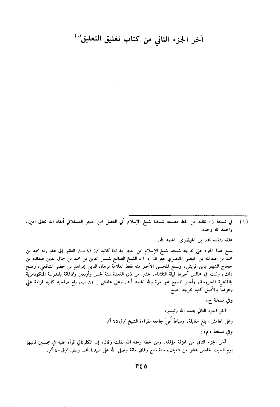 آخر الْجُزْء الثَّانِي من كتاب تغليق التَّعْلِيق