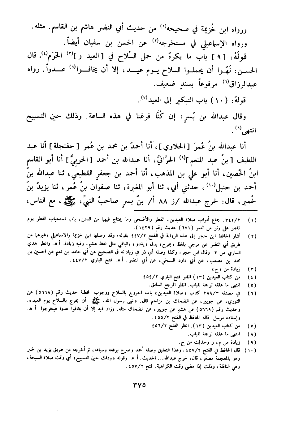 أَنا عَبْدُ اللَّهِ بْنُ عُمَرَ [الْحَلاوِيُّ] أَنا أَحْمد بن مُحَمَّد بن عمر [حفنجلة] أَنا عبد اللَّطِيف [بن عَبْدِ الْمُنْعِمِ] الْحَرَّانِيُّ أَنا عَبْدُ اللَّهِ بْنُ أَحْمَدَ [الْحَرْبِيُّ] أَنا أَبُو الْقَاسِم ابْن الْحصين أَنا أَبُو عَليّ بن الْمُذْهِبُ أَنا أَحْمَدُ بْنُ جَعْفَرٍ الْقطيعِي ثَنَا عبد الله بن أَحْمد بن حَنْبَل حَدَّثَني أبي ثَنَا أَبُو الْمُغِيرَةِ ثَنَا صَفْوَانُ بن عمر ثَنَا يزِيد ين خُمَيْرٍ قَالَ خَرَجَ عَبْدُ اللَّهِ ز 88 أبْنُ بُسْرٍ صَاحِبُ النَّبِيِّ صَلَّى اللَّهُ عَلَيْهِ وَسَلَّمَ مَعَ النَّاسِ