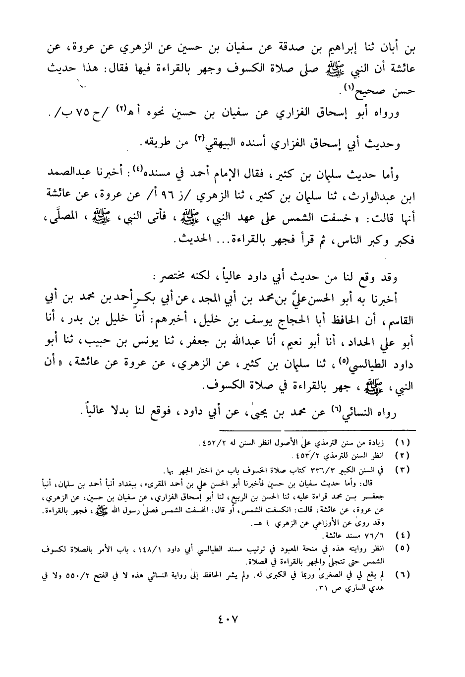 أَخْبَرَنَا بِهِ أَبُو الْحَسَنِ عَلِيُّ بْنُ مُحَمَّدِ بْنِ أَبِي الْمَجْدِ عَنْ أَبِي بَكْرٍ أَحْمَدَ بْنِ مُحَمَّد بن أبي الْقَاسِم أَن الْحَافِظَ أَبَا الْحَجَّاجِ يُوسُفَ بْنَ خَلِيلٍ أَخْبَرَهُمْ أَنا خَلِيلُ بْنُ بَدْرٍ أَنا أَبُو عَلِيٍّ الْحَدَّادُ أَنا أَبُو نعيم أَنا عبد اللَّهِ بْنُ جَعْفَرٍ ثَنَا يُونُسُ بْنُ حَبِيبٍ ثَنَا أَبُو دَاوُدَ الطَّيَالِسِيُّ ثَنَا سُلَيْمَانُ بْنُ كَثِيرٍ عَنِ الزُّهْرِيِّ عَنْ عُرْوَةَ عَنْ عَائِشَةَ ((أَنَّ النَّبِيَّ صَلَّى اللَّهُ عَلَيْهِ وَسَلَّمَ جَهَرَ بِالْقِرَاءَةِ فِي صَلاةِ الْكُسُوفِ