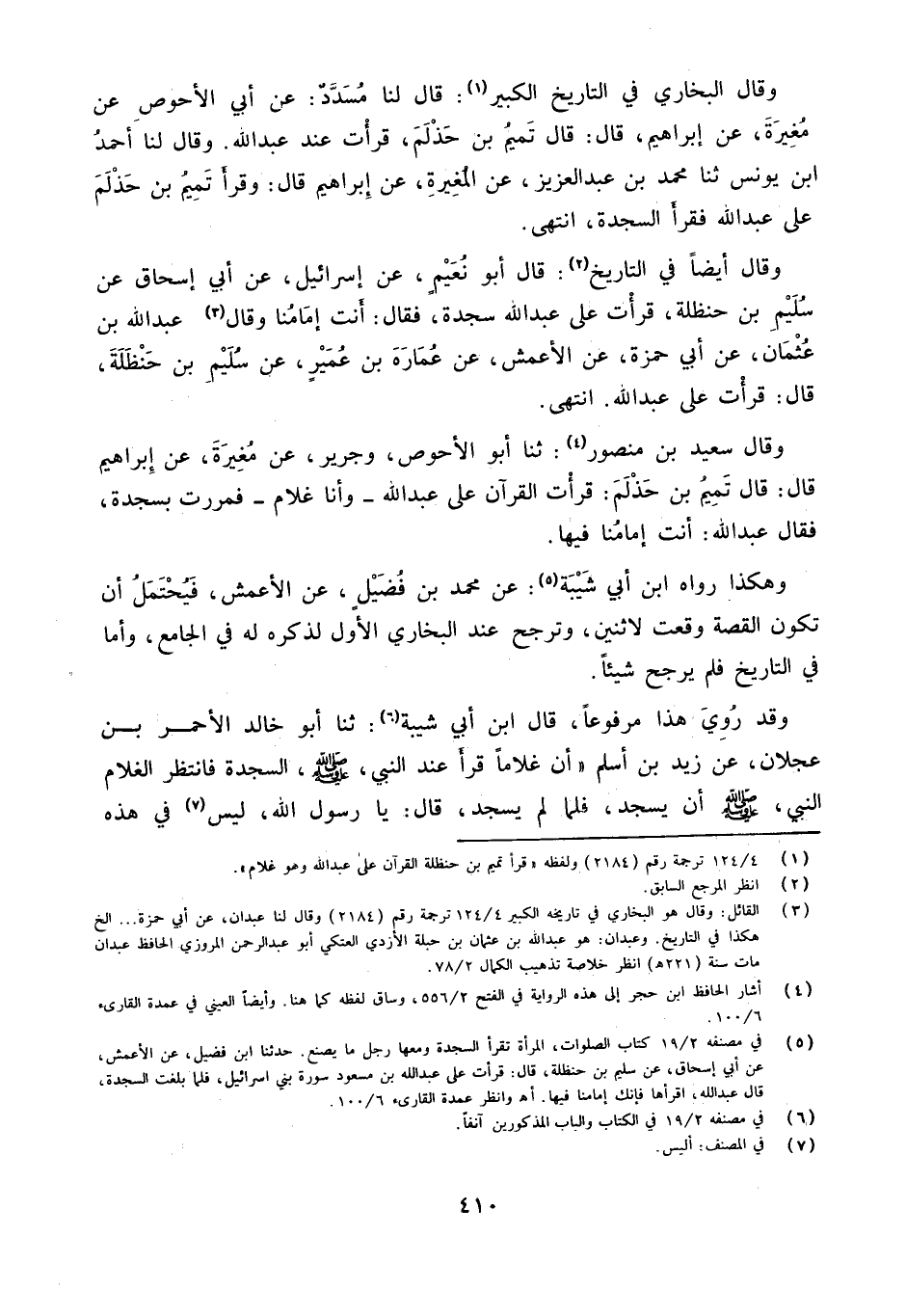 وَقَالَ أَيْضا فِي التَّارِيخ قَالَ أَبُو نعيم عَن إِسْرَائِيل عَنْ أَبِي إِسْحَاقَ عَنْ سُلَيْمِ بن حَنْظَلَة قَرَأت على عبد الله سَجْدَة فَقَالَ أَنْت إمامنا وَقَالَ عبد الله بن عُثْمَان عَن أبي حَمْزَة عَن الْأَعْمَش عَن عمَارَة بن عُمَيْر عَن سُلَيْمِ بْنِ حَنْظَلَةَ قَالَ قَرَأت على عبد الله انْتهى