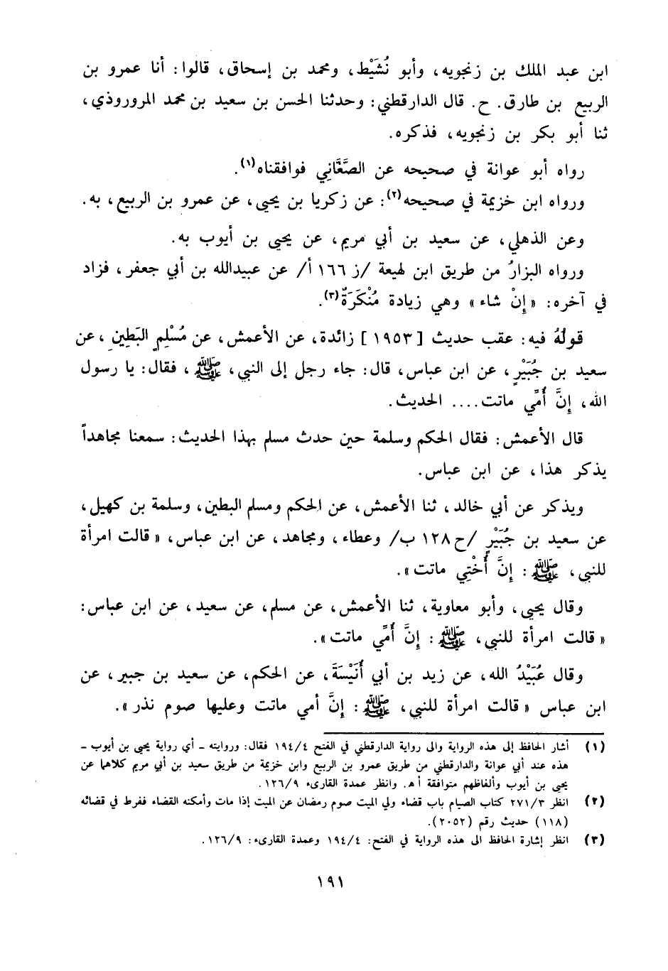 عقب حَدِيث 1953 زَائِدَة عَنِ الأَعْمَشِ عَنْ مُسْلِمٍ الْبَطِينِ عَنْ سَعِيدِ بْنِ جُبَيْرٍ عَنِ ابْنِ عَبَّاسٍ قَالَ جَاءَ رَجُلٌ إِلَى النَّبِيِّ صَلَّى اللَّهُ عَلَيْهِ وَسَلَّمَ فَقَالَ يَا رَسُولَ اللَّهِ إِنَّ أُمِّي مَاتَتْ الْحَدِيثَ