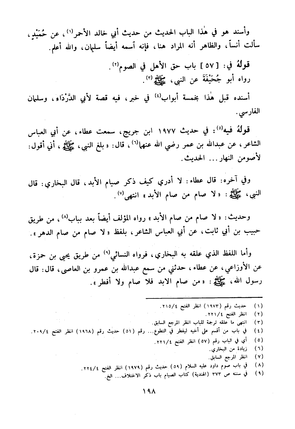 وَفِي آخِره قَالَ عَطاء لَا أَدْرِي كَيفَ ذكر صِيَام الْأَبَد قَالَ البُخَارِيّ قَالَ النَّبِي صلى الله عَلَيْهِ وَسلم لَا صَامَ من صَامَ الْأَبَد انْتهى
