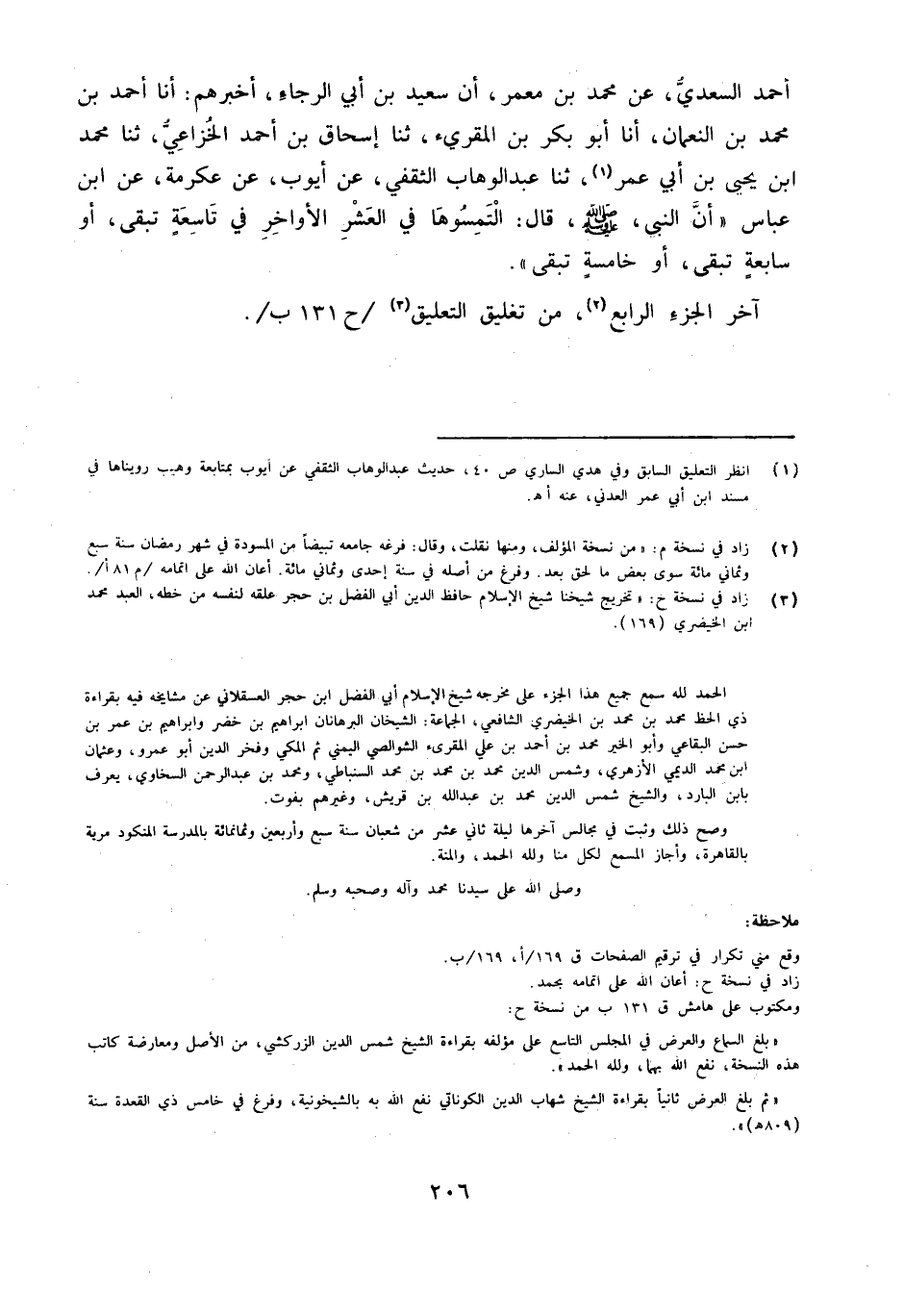 آخر الْجُزْء الرَّابِع من تغليق التَّعْلِيق