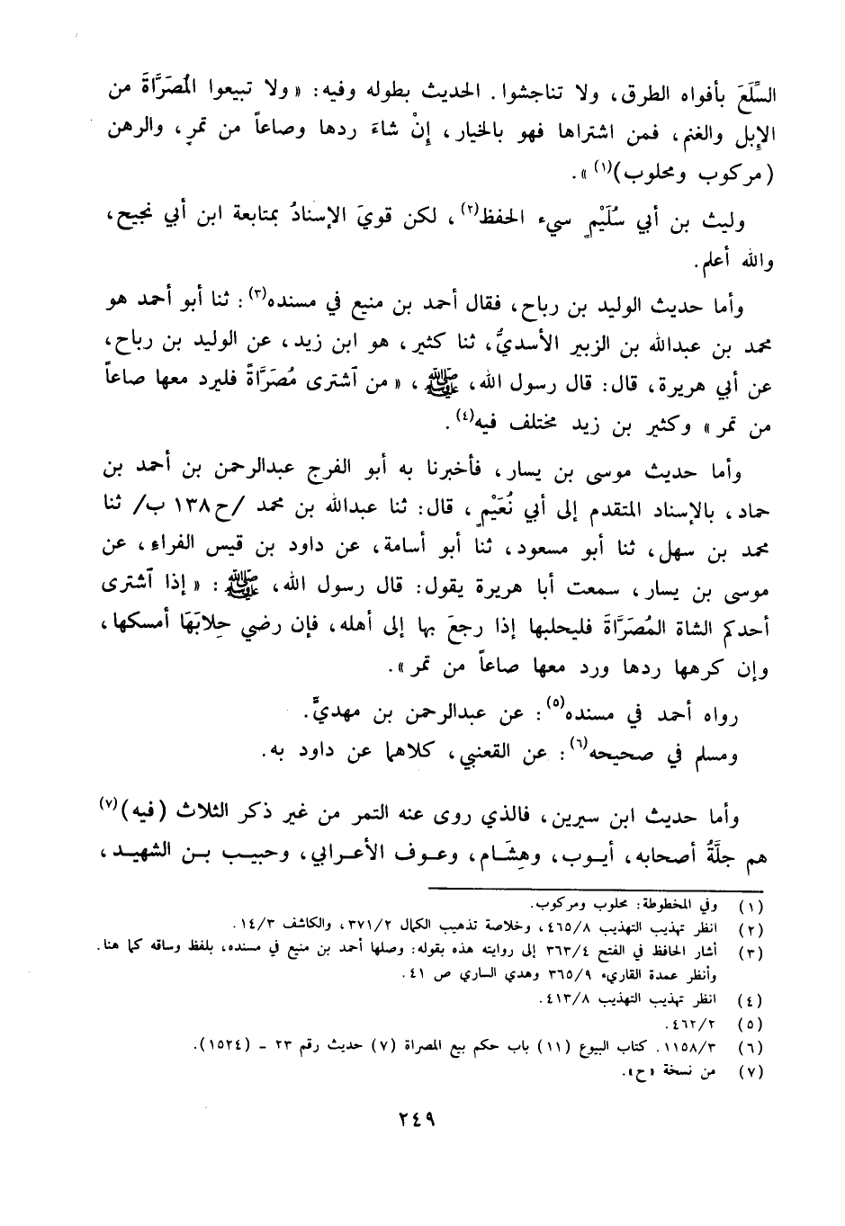 وَأما حَدِيث ابْن سِيرِين فَالَّذِي روى عَنهُ التَّمْر من غير ذكر الثَّلَاث فِيهِ هم جلة أَصْحَابه أَيُّوب وَهِشَام وعَوْف الْأَعرَابِي وحبِيب بن الشَّهِيد