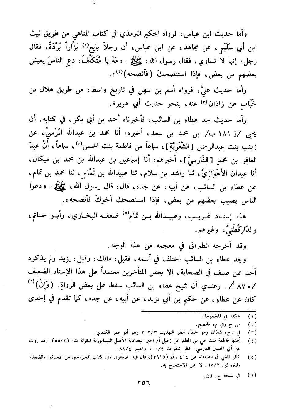 وَأما حَدِيث جد عَطاء بن السَّائِب فَأَخْبَرنَاهُ أَحْمد بن أبي بكر فِي كِتَابه أَنَّ يَحْيَى بْنَ مُحَمَّدِ بْنِ سَعْدٍ أَخْبَرَهُ أَنا مُحَمَّدُ بْنُ عَبْدِ اللَّهِ الْمُرْسِيُّ عَنْ زَيْنَبَ بِنْتِ عَبْدِ الرَّحَمْنِ الشَّعْرِيَّةِ سَمَاعًا مِنْ فَاطِمَةَ بِنْتِ الْحَسَنِ سَمَاعا أَن عبد الغافر ابْن مُحَمَّدٍ الْفَارِسِيَّ أَخْبَرَهُمْ أَنا إِسْمَاعِيلُ بن عبد الله بن مُحَمَّد بْنِ مِيكَالَ أَنا عَبْدَانُ الأَهْوَازِيُّ ثَنَا رَاشِدُ بْنُ سَلامٍ ثَنَا عبيد الله بْنُ تَمَّامٍ ثَنَا مُحَمَّدُ بْنُ تَمَّامٍ عَنْ عَطَاءِ بْنِ السَّائِبِ عَنْ أَبِيهِ عَنْ جَدِّهِ قَالَ قَالَ رَسُول الله صلى الله عَلَيْهِ وَسَلَّمَ دَعُوا النَّاسَ يُصِيبُ بَعْضُهُمْ مِنْ بَعْضٍ فَإِذَا اسْتَنْصَحَكَ أَخُوكَ فَانْصَحْهُ