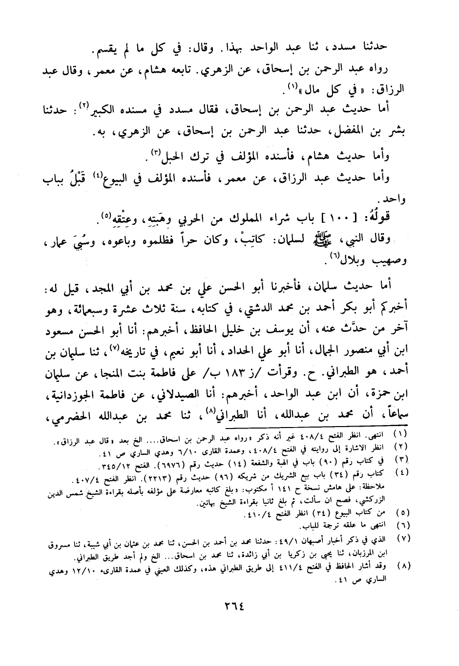 رَوَاهُ عبد الرَّحْمَن بن إِسْحَاق عَن الزُّهْرِيّ تَابعه هِشَام عَن معمر وَقَالَ عبد الرَّزَّاق فِي كل مَال