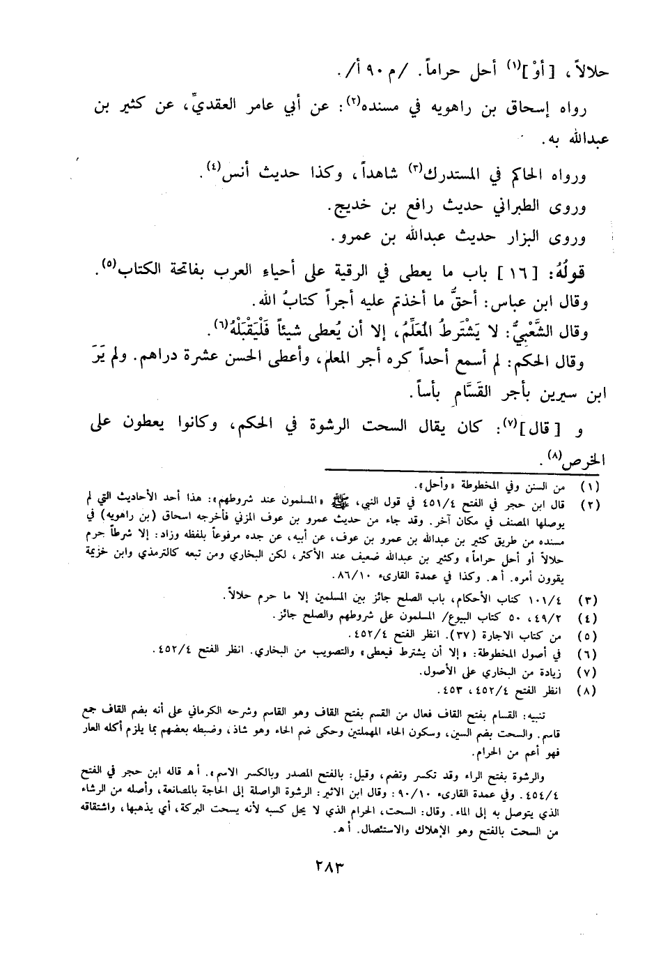 وَقَالَ كَانَ يُقَال السُّحت الرِّشْوَة فِي الحكم وَكَانُوا يُعْطون على الْخرص