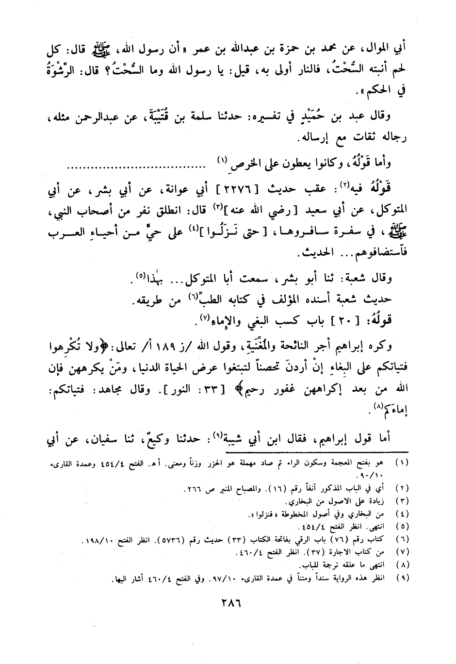 عقب حَدِيث 2276 أبي عَوَانَةَ عَنْ أَبِي بِشْرٍ عَنْ أَبِي الْمُتَوَكِّلِ عَنْ أَبِي سَعِيدٍ رَضِيَ اللَّهُ عَنْهُ قَالَ انْطَلَقَ نَفَرٍ مِنْ أَصْحَابِ النَّبِيِّ صَلَّى اللَّهُ عَلَيْهِ وَسَلَّمَ فِي سَفْرَةٍ سَافَرُوهَا حَتَّى نَزَلُوا عَلى حَيٍّ مِنْ أَحْيَاءِ الْعَرَبِ فَاسْتَضَافُوهُمْ الحَدِيث