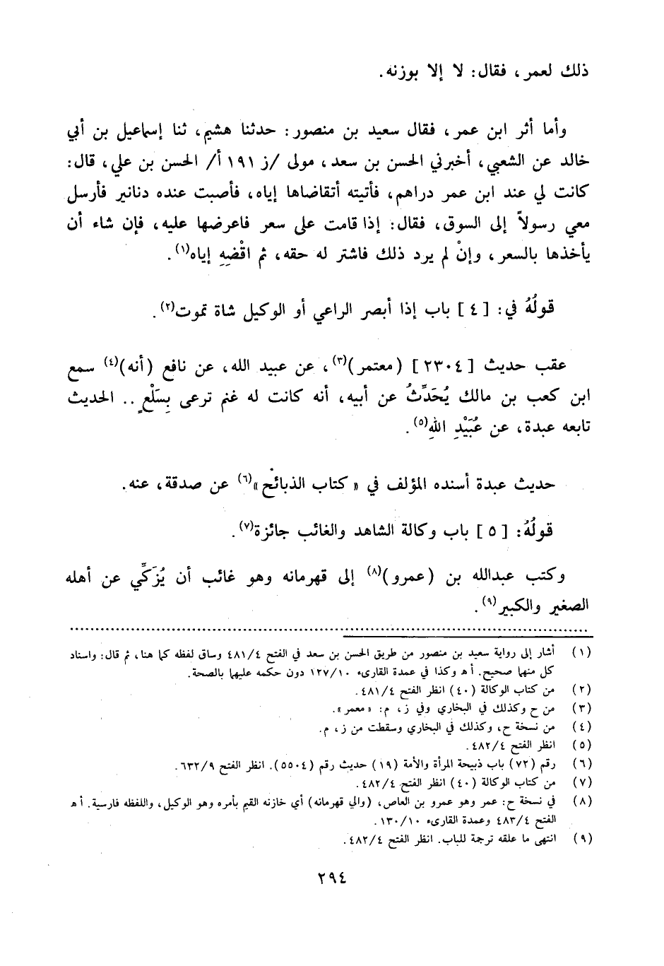 عقب حَدِيث 2304 مُعْتَمر عَن عبيد الله عَن نَافِع أَنه سمع ابْن كَعْب بن مَالك يحدث عَن أَبِيه أَنه كَانَت لَهُ غنم ترعى بسلع الحَدِيث تَابعه عَبدة عَن عبيد الله