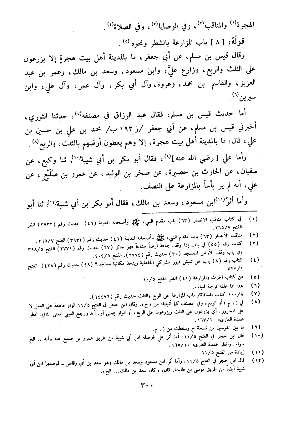 وَأما حَدِيث قيس بن مُسلم فَقَالَ عبد الرَّزَّاق فِي مُصَنفه حَدثنَا الثَّوْريّ أَخْبرنِي قيس بن مُسلم عَن أبي جَعْفَر مُحَمَّد بن عَليّ بن حُسَيْن بن عَليّ قَالَ مَا بِالْمَدِينَةِ أهل بَيت هِجْرَة إِلَّا وهم يُعْطون أَرضهم بِالثُّلثِ وَالرّبع