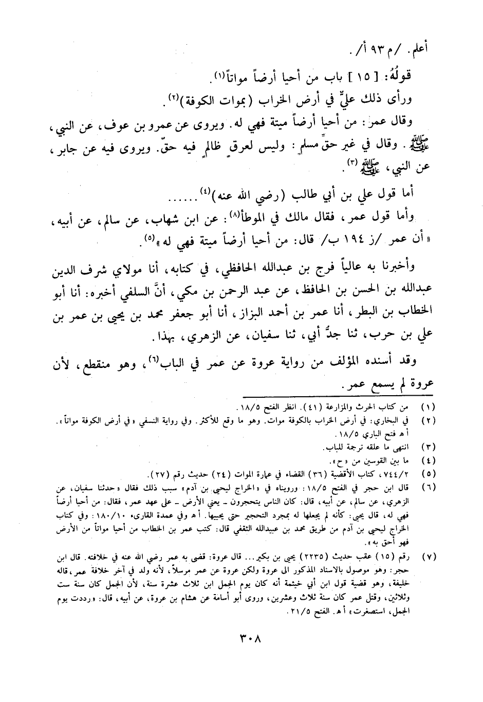 وَقَالَ عمر من أَحْيَا أَرضًا ميتَة فَهِيَ لَهُ ويروي عَن عَمْرو بن عَوْف عَن النَّبِي صلى الله عَلَيْهِ وَسلم وَقَالَ فِي غير حق مُسلم وَلَيْسَ لعرق ظَالِم فِيهِ حق ويروي فِيهِ عَن جَابر عَن النَّبِي صلى الله عَلَيْهِ وَسلم