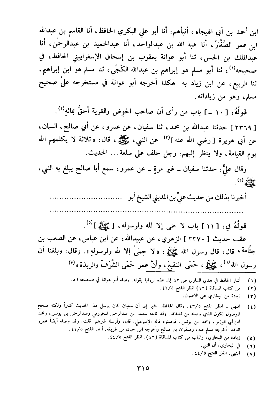 عقب حَدِيث 2370 الزُّهْرِيّ عَن عبيد الله عَنِ ابْنِ عَبَّاسٍ عَنِ الصَّعْبِ بْنِ جَثَّامَةَ قَالَ قَالَ رَسُولُ الله صلى الله عَلَيْهِ وَسلم لَا حمى إِلَّا لله وَلِرَسُولِهِ وَقَالَ وَبَلَغَنَا أَنَّ رَسُولَ اللَّهِ صَلَّى اللَّهُ عَلَيْهِ وَسَلَّمَ حَمَى النَّقِيعَ وَأَنَّ عُمَرَ حَمَى الشَّرَفَ والربذة