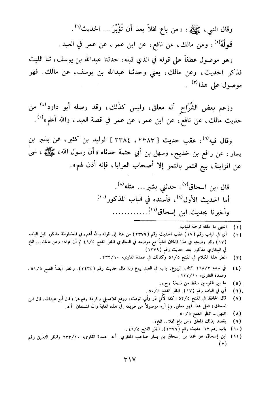 وَزعم بعض الشُّرَّاح أَنه مُعَلّق وَلَيْسَ كَذَلِك وَقد وَصله أَبُو دَاوُد من حَدِيث مَالك عَن نَافِع عَن ابْن عمر عَن عمر فِي قصَّة العَبْد وَالله أعلم