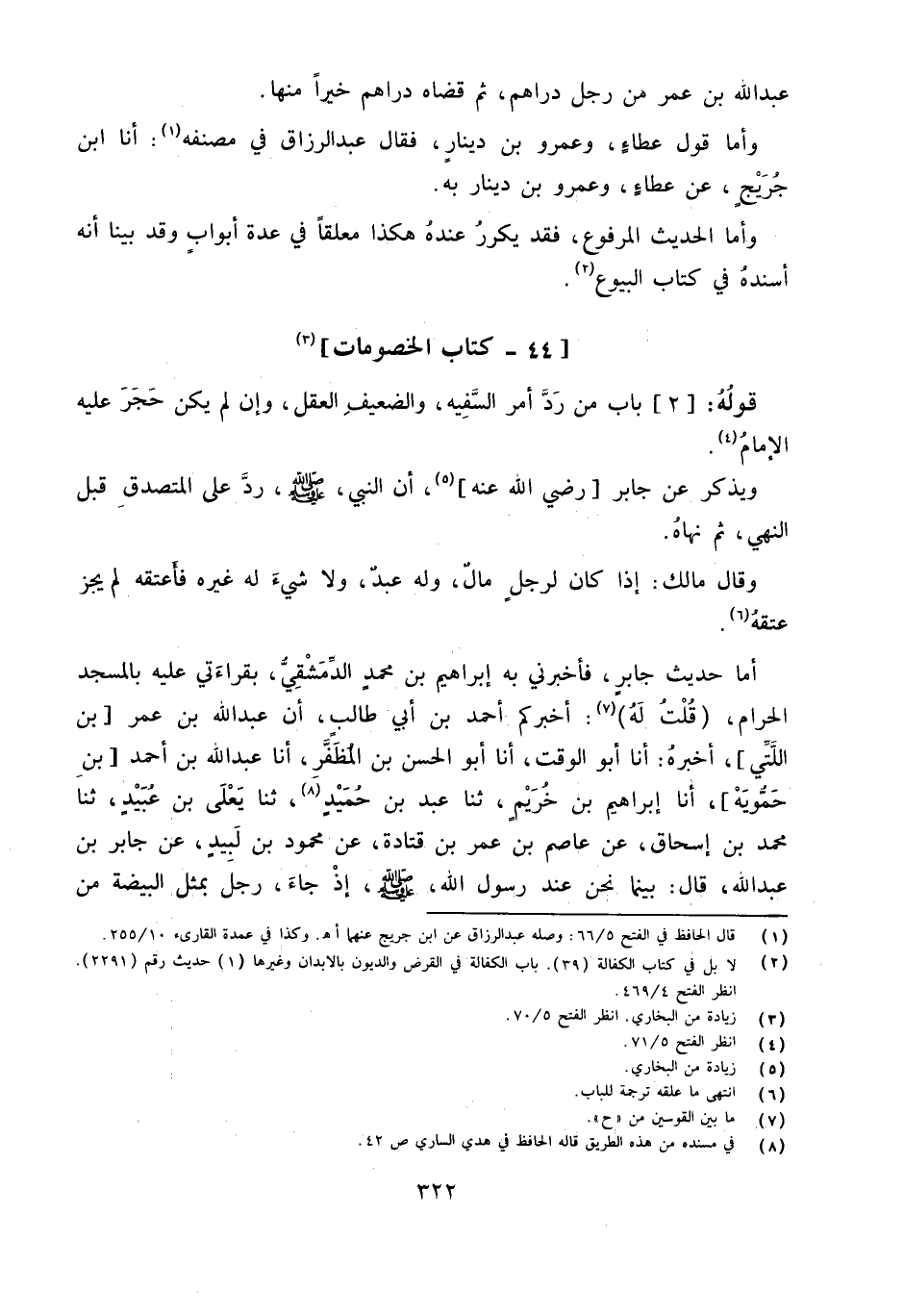 وَأما الحَدِيث الْمَرْفُوع فقد يُكَرر عِنْده هَكَذَا مُعَلّقا فِي عدَّة أَبْوَاب وَقد بَينا أَنه أسْندهُ فِي كتاب الْبيُوع
