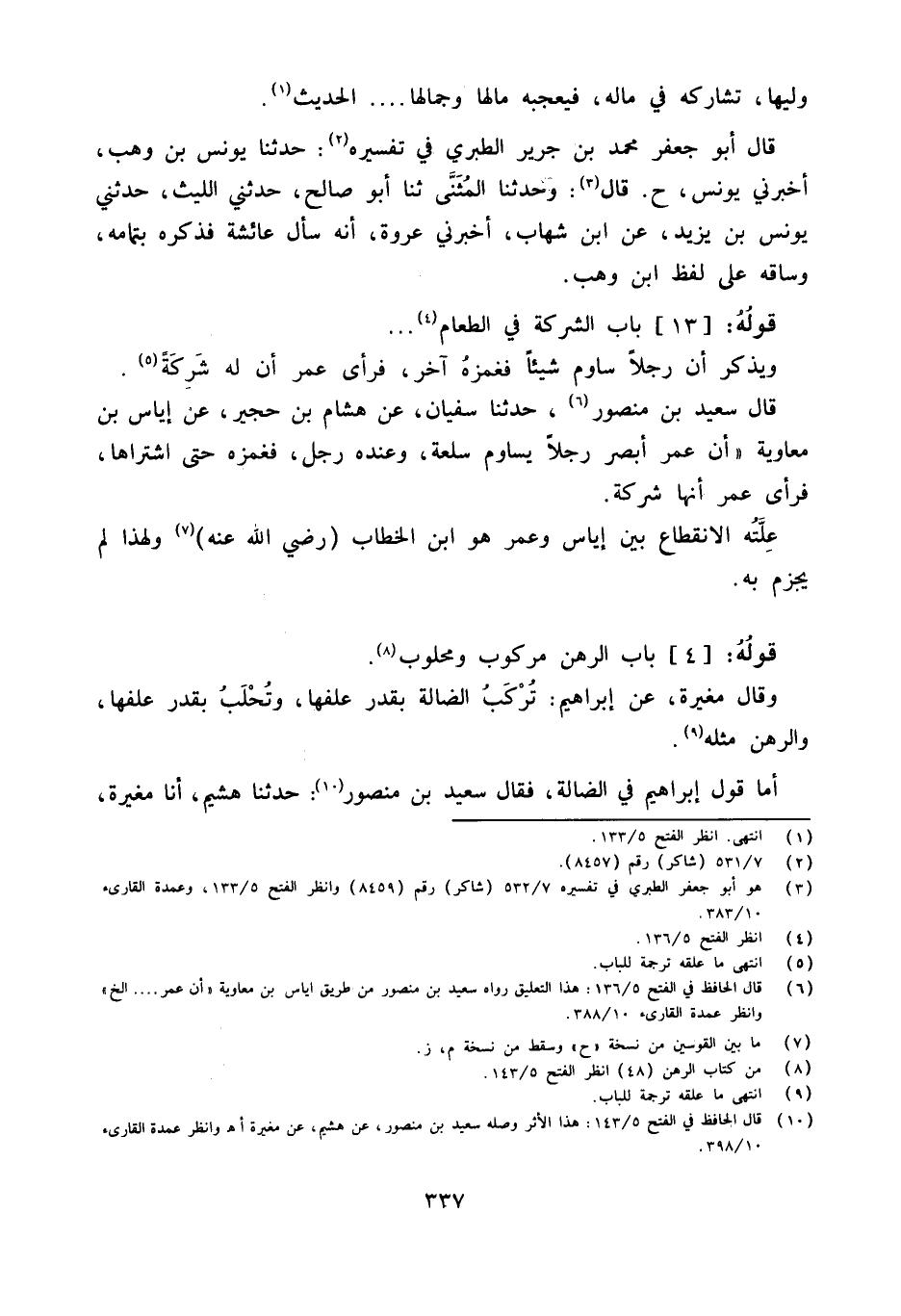 أما قَول إِبْرَاهِيم فِي الضَّالة فَقَالَ سعيد بن مَنْصُور حَدَّثنا هشيم أَنا مُغيرَة