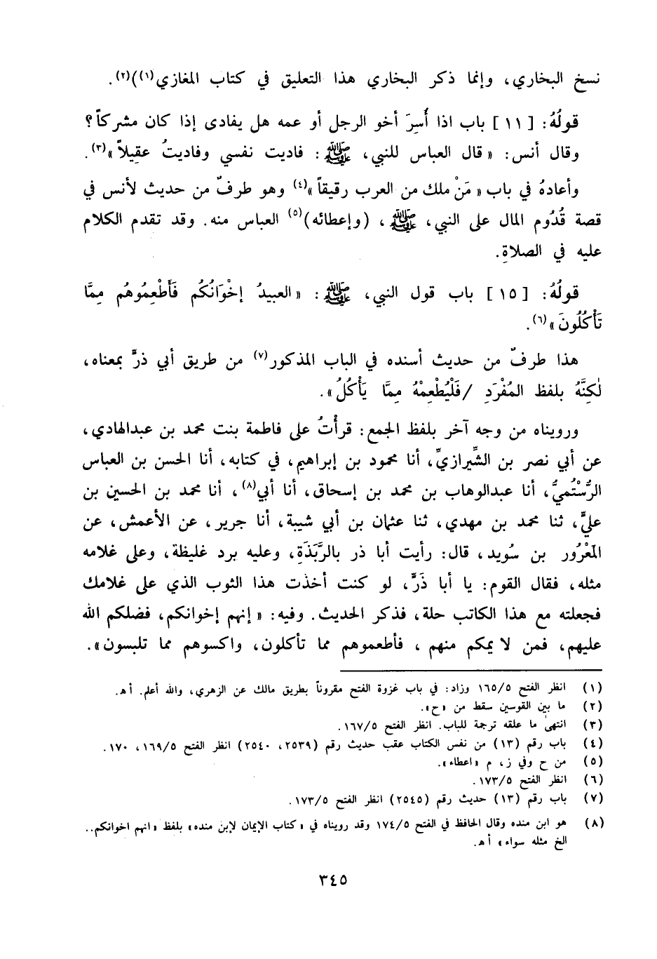 نسخ البُخَارِيّ وَإِنَّمَا ذكر البُخَارِيّ هَذَا التَّعْلِيق فِي كتاب الْمَغَازِي