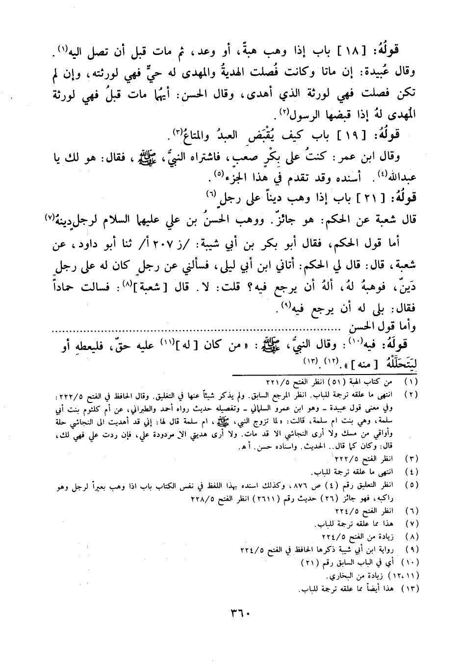أما قَول الحكم فَقَالَ أَبُو بَكْرِ بْنُ أَبِي شيبَة ثَنَا أَبُو دَاوُد عَن شُعْبَة قَالَ قَالَ لي الحكم أَتَانِي ابْن أبي ليلى فَسَأَلَنِي عَن رجل كَانَ لَهُ على رجل دين فوهبه لَهُ أَله أَن يرجع فِيهِ قلت لَا قَالَ شُعْبَة فسالت حمادا فَقَالَ بلَى لَهُ أَن يرجع فِيهِ