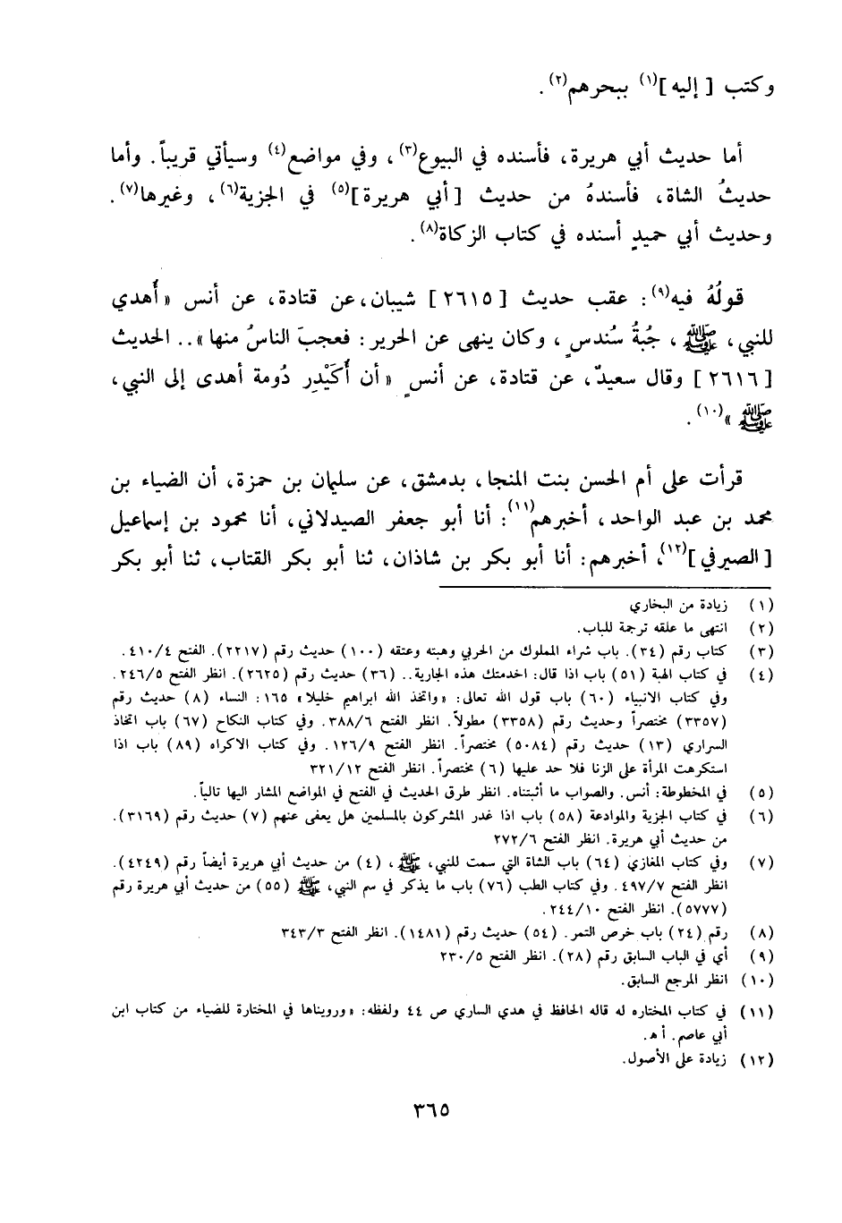 عقب حَدِيث 2615 شَيبَان عَن قَتَادَة عَن أنس أهدي للنَّبِي صلى الله عَلَيْهِ وَسلم جُبَّة سندس وَكَانَ يُنْهِي عَن الْحَرِير فَعجب النَّاس مِنْهَا الحَدِيث 2616 وَقَالَ سعيد عَن قَتَادَة عَن أنس أَن أكيدر دومة أهْدى إِلَى النَّبِي صلى الله عَلَيْهِ وَسلم