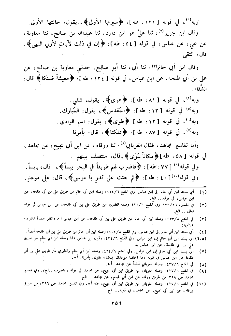 وَقَالَ ابْنُ جَرِيرٌ ثَنَا عَلِيٌّ هُوَ ابْنُ دَاوُدَ ثَنَا عَبْدُ اللَّهِ بْنُ صَالِحٍ ثَنَا مُعَاوِيَةُ عَنْ عَلِيٍّ عَن عَبَّاس فِي قَوْله 54 طه {إِنَّ فِي ذَلِكَ لآيَاتٍ لأُولِي النهى} قَالَ التُّقَى