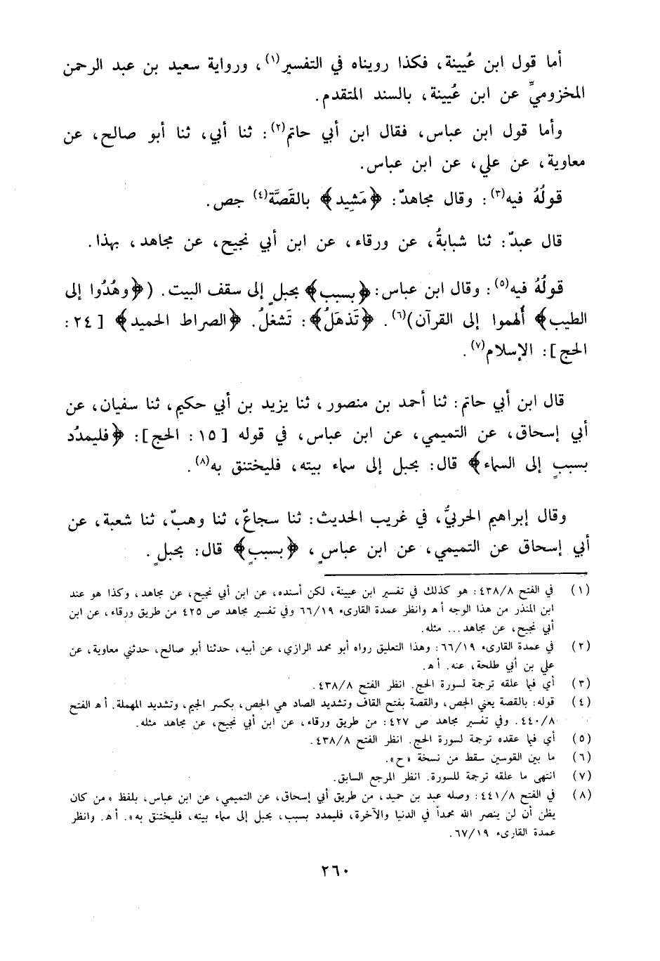 وَقَالَ ابْن عَبَّاس {بِسَبَب} بِحَبل إِلَى سقف الْبَيْت {وَهُدُوا إِلَى الطّيب} ألهموا إِلَى الْقُرْآن {تذهل} تشغل {صِرَاط الحميد} 24 الْحَج الْإِسْلَام
