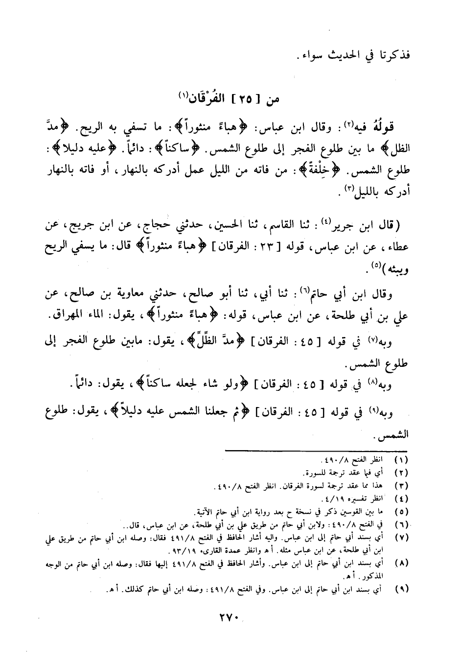 وَقَالَ ابْن عَبَّاس {هباء منثورا} مَا تسفي بِهِ الرّيح {مَدَّ الظل} مَا بَين طُلُوع الْفجْر إِلَى طُلُوع الشَّمْس {سَاكِنا} دَائِما {عَلَيْهِ دَلِيلا} طُلُوع الشَّمْس {خَلفه} من فَاتَهُ من اللَّيْل عمل أدْركهُ بِالنَّهَارِ أَو فَاتَهُ بِالنَّهَارِ أدْركهُ بِاللَّيْلِ