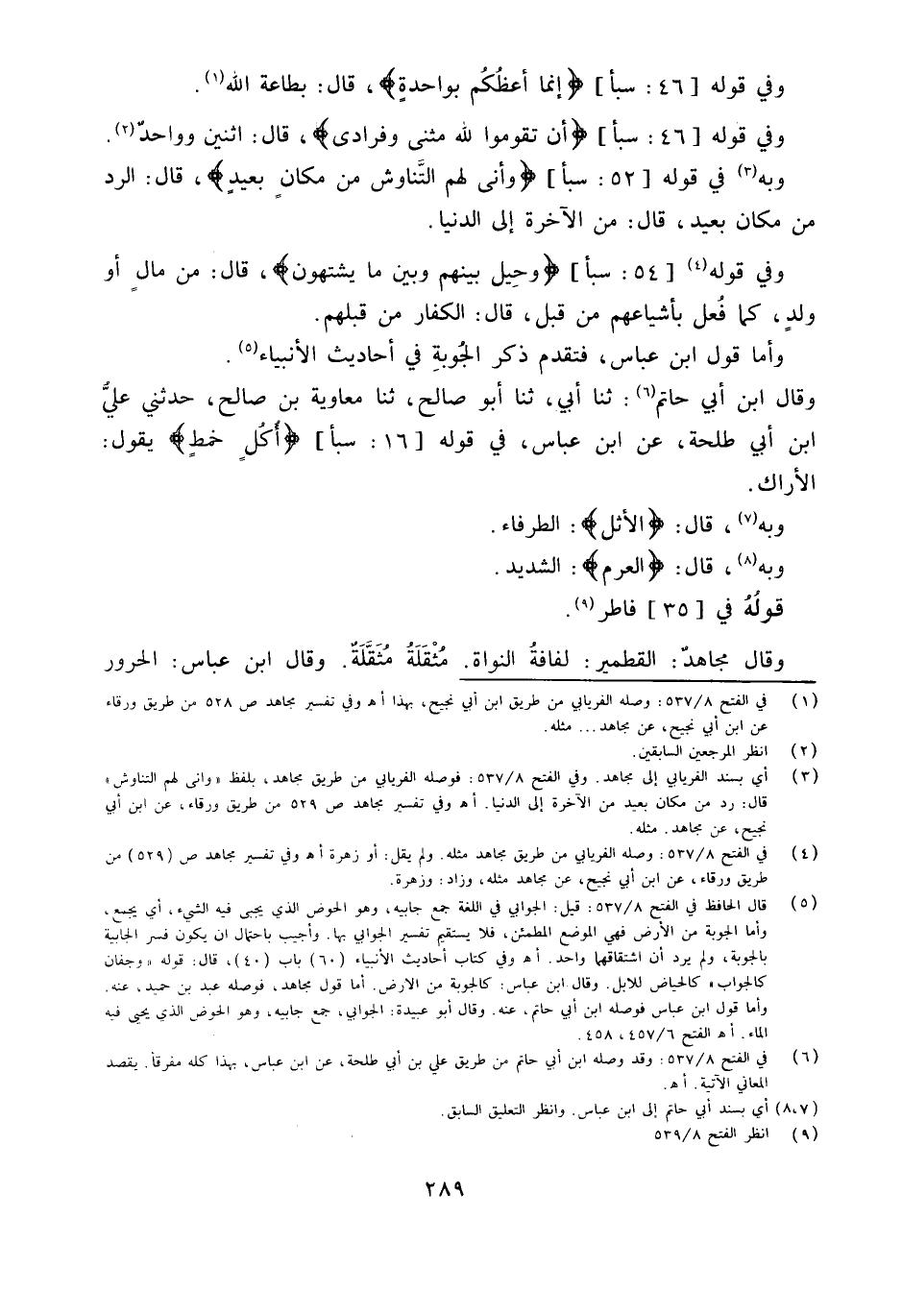 وَبِه فِي قَوْله 52 سبأ {وَأَنَّى لَهُمُ التَّنَاوُشُ مِنْ مَكَانٍ بعيد} قَالَ الرَّد من مَكَان بعيد قَالَ من الْآخِرَة إِلَى الدُّنْيَا