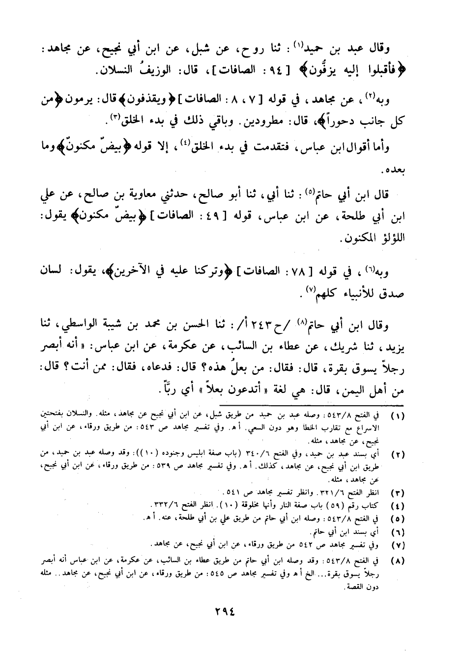 قَالَ ابْنُ أَبِي حَاتِمٍ ثَنَا أَبِي ثَنَا أَبُو صَالِحٍ حَدَّثَني مُعَاوِيَةُ بْنُ صَالِحٍ عَن عَليّ ابْنُ أَبِي طَلْحَةَ عَنِ ابْنِ عَبَّاس قَوْله 49 الصافات {بيض مَكْنُون} يَقُولُ اللُّؤْلُؤُ الْمَكْنُونُ