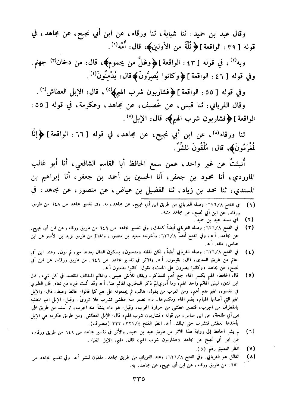 وَقَالَ عبد بن حميد ثَنَا شَبابَة ثَنَا وَرْقَاء عَن ابْن أبي نجيح عَن مُجَاهِد فِي قَوْله 39 الْوَاقِعَة {ثلة من الْأَوَّلين} قَالَ أمة