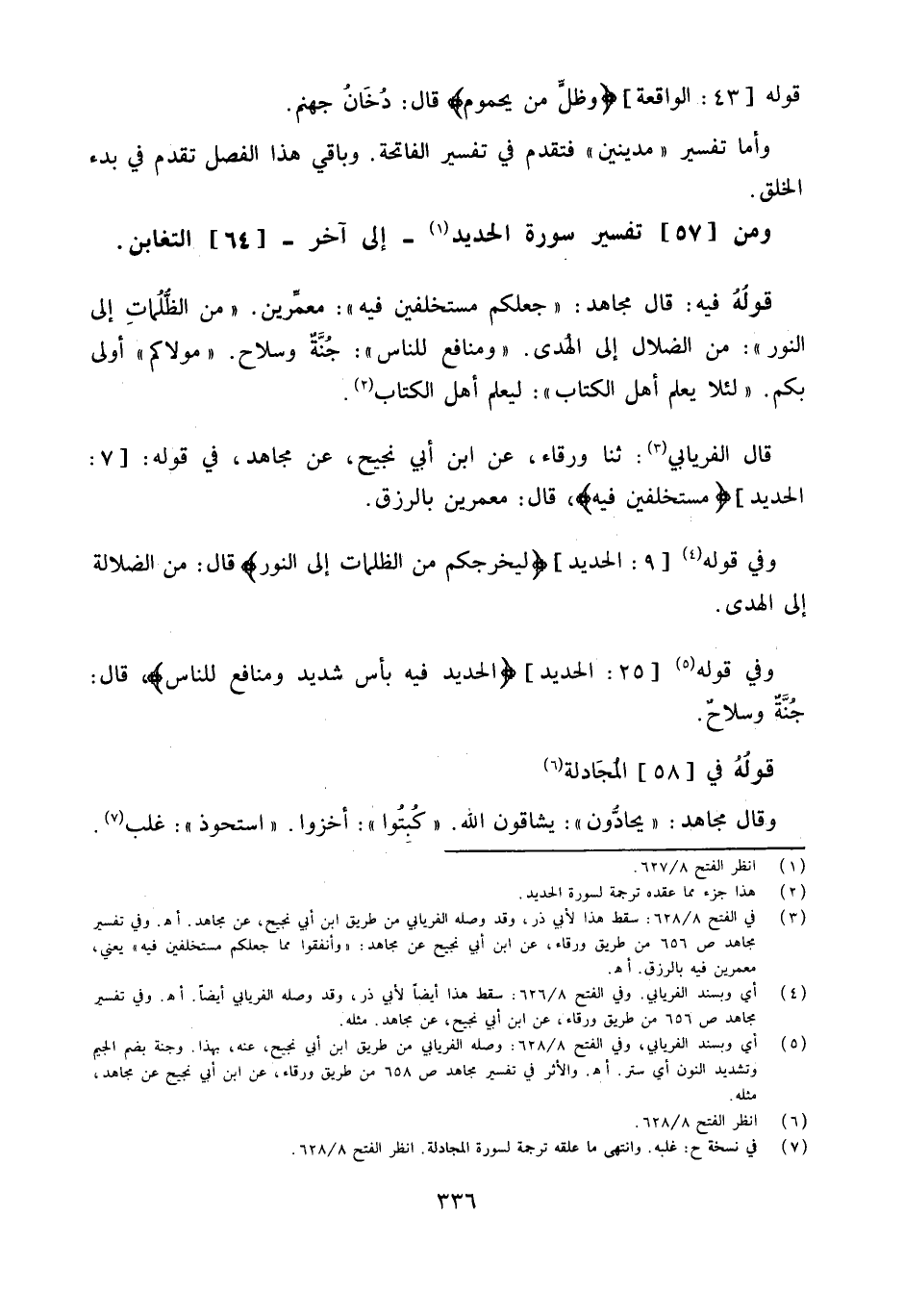 قَالَ الْفرْيَابِيّ ثَنَا وَرْقَاء عَن ابْن أبي نجيح عَن مُجَاهِد فِي قَوْله 7 الْحَدِيد {مستخلفين فِيهِ} قَالَ معمرين بالرزق