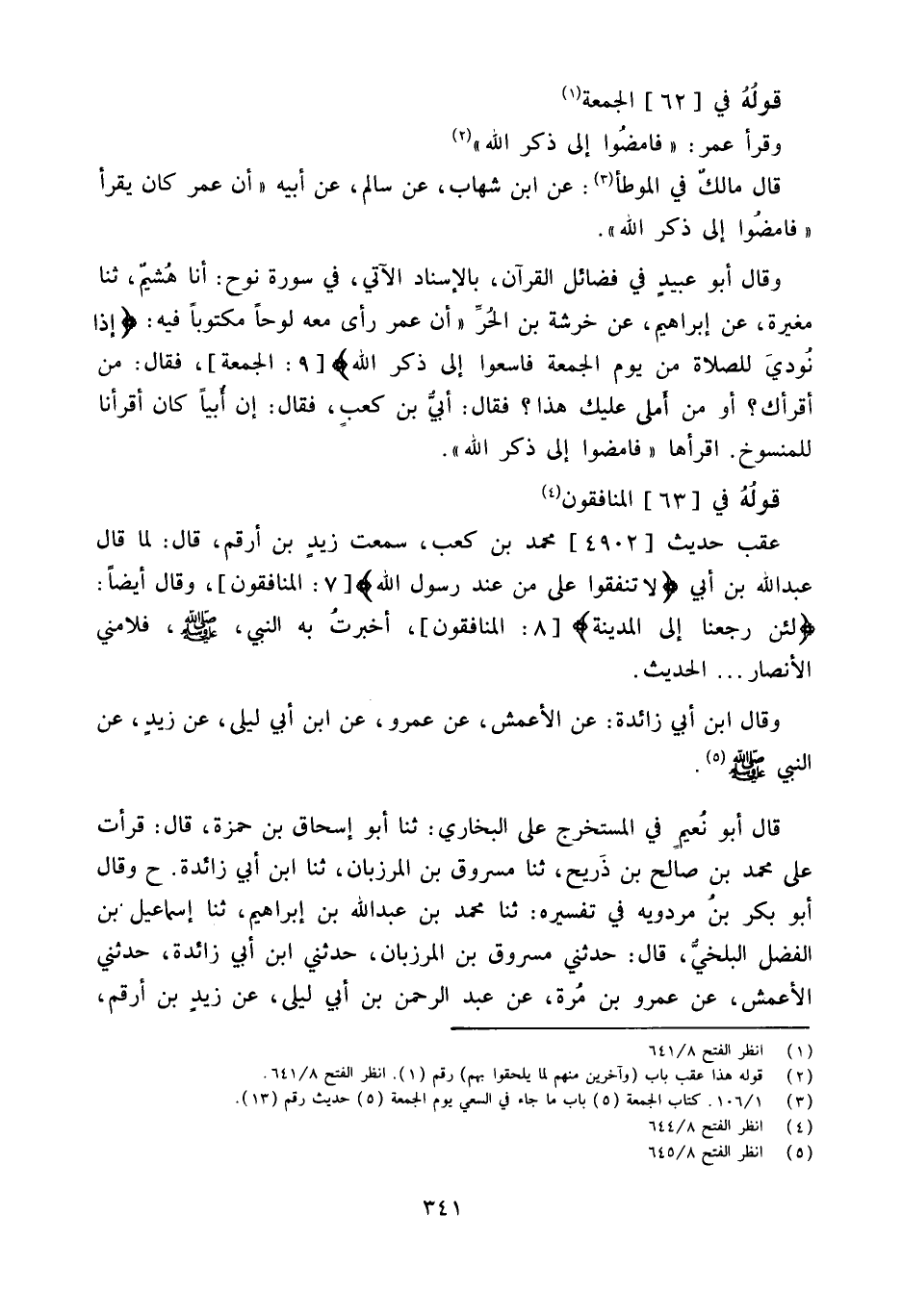 قَالَ أَبُو نُعَيْمٍ فِي الْمُسْتَخْرَجِ عَلَى الْبُخَارِيِّ ثَنَا أَبُو إِسْحَاقَ بْنُ حَمْزَةَ قَالَ قَرَأْتُ عَلَى مُحَمَّدِ بْنِ صَالِحِ بْنِ ذُرَيْحٍ ثَنَا مَسْرُوقُ بْنُ الْمَرْزُبَانِ ثَنَا ابْنُ أَبِي زَائِدَةَ ح وَقَالَ أَبُو بَكْرِ بْنُ مَرْدَوَيْهِ فِي تَفْسِيره ثَنَا مُحَمَّدُ بْنُ عَبْدِ اللَّهِ بْنِ إِبْرَاهِيمَ ثَنَا إِسْمَاعِيلُ بْنُ الْفَضْلِ الْبَلْخِيُّ قَالَ حَدَّثَنِي مَسْرُوقُ بْنُ الْمَرْزُبَانِ حَدَّثَنِي ابْنُ أَبِي زَائِدَةَ حَدَّثَنِي الأَعْمَشُ عَنْ عَمْرِو بْنِ مُرَّةَ عَنِ عبد الرَّحْمَن بن أبي ليلى عَن زيد بن أَرقم
