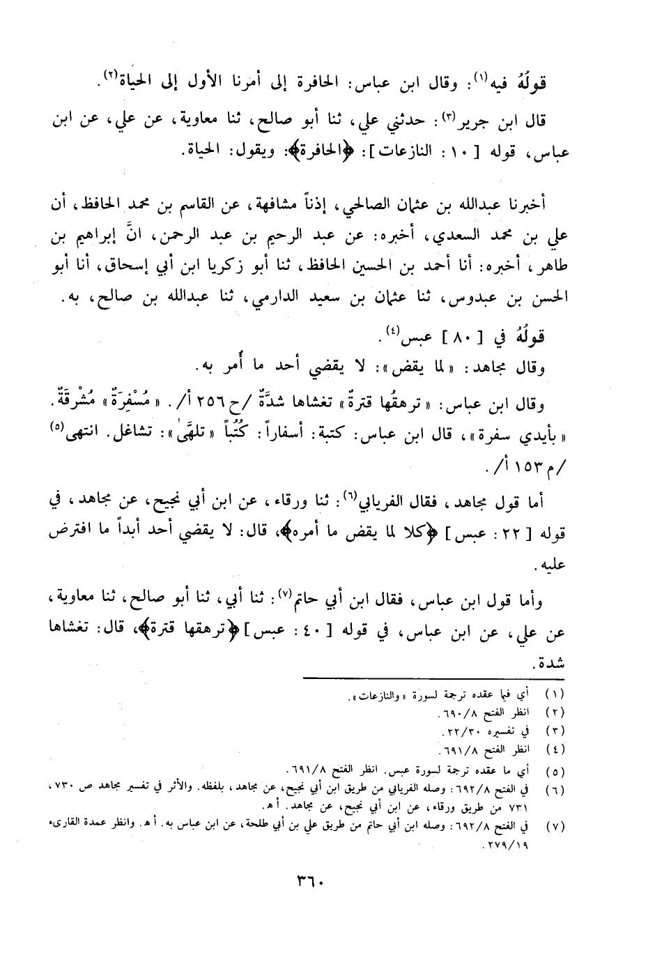 قَالَ ابْنُ جَرِيرٍ حَدَّثَني عَلِيٌّ ثَنَا أَبُو صَالِحٍ ثَنَا مُعَاوِيَةُ عَنْ عَلِيٍّ عَنِ ابْنِ عَبَّاسٍ قَوْله 10 النازعات {الحافرة} وَيَقُولُ الْحَيَاةُ