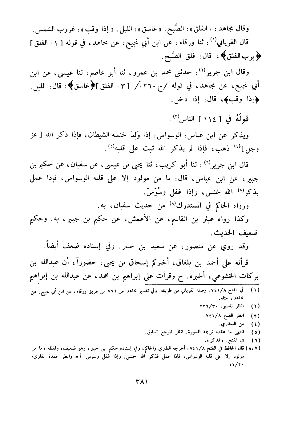 قَالَ الْفرْيَابِيّ ثَنَا وَرْقَاء عَن ابْن أبي نجيح عَن مُجَاهِد فِي قَوْله 1 الفلق {بِرَبّ الفلق} قَالَ فلق الصُّبْح