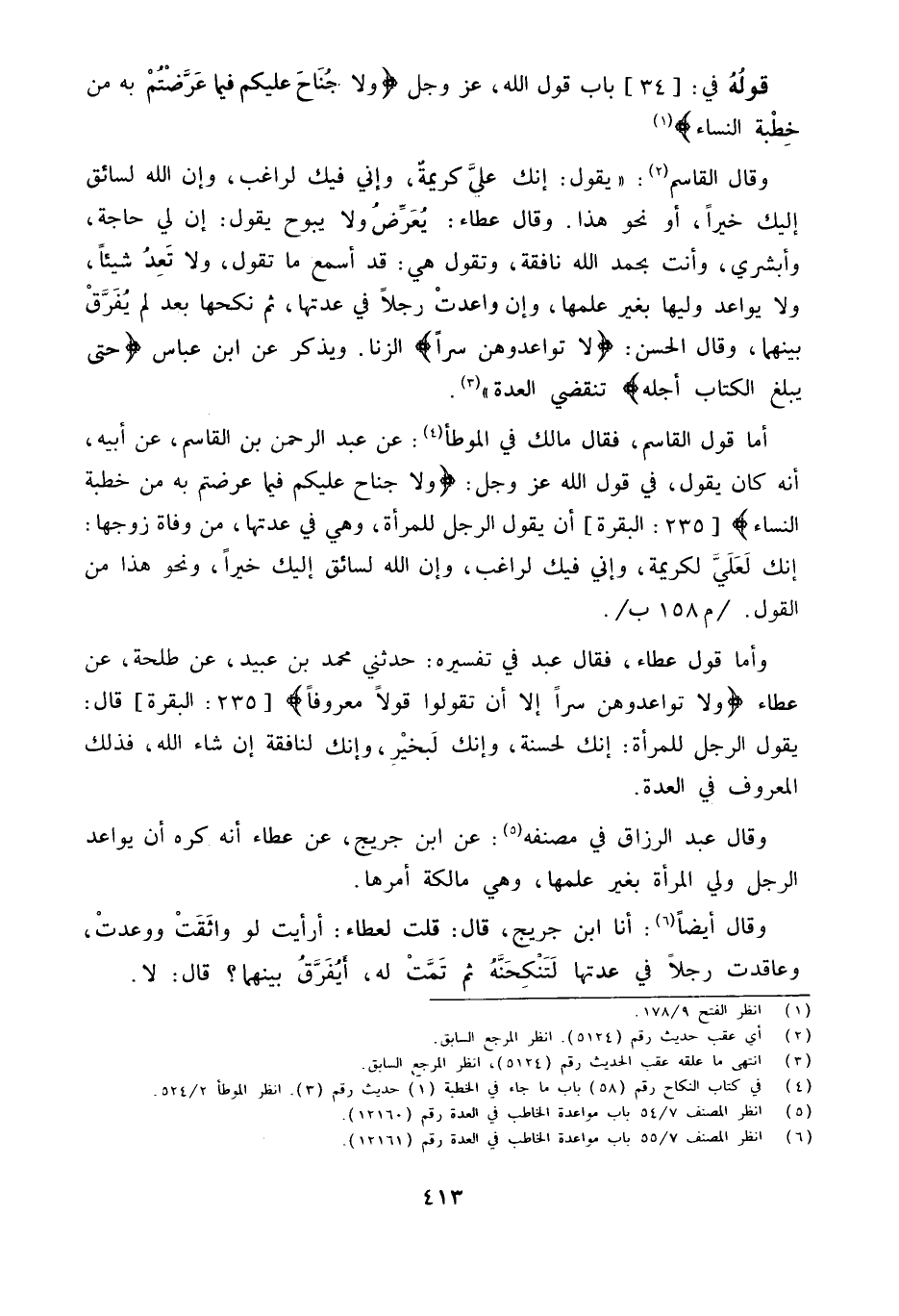 أما قَول الْقَاسِم فَقَالَ مَالِكٌ فِي الْمُوَطَّأِ عَنْ عبد الرَّحْمَن بن الْقَاسِم عَن أَبِيه أَنه كَانَ يَقُول فِي قَول الله عز وَجل {وَلا جُنَاحَ عَلَيْكُمْ فِيمَا عَرَّضْتُمْ بِهِ مِنْ خِطْبَةِ النِّسَاءِ} 235 الْبَقَرَة أَن يَقُول الرجل للْمَرْأَة وَهِي فِي عدتهَا من وَفَاة زَوجهَا إِنَّك لعَلي لكريمة وَإِنِّي فِيك لراغب وَإِن الله لسائق إِلَيْك خيرا وَنَحْو هَذَا من القَوْل / م 158 ب /