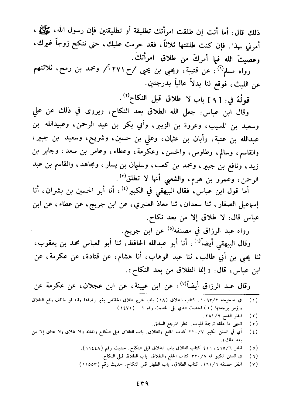 أما قَول ابْن عَبَّاس فَقَالَ الْبَيْهَقِيُّ فِي الْكَبِيرِ أَنا أَبُو الْحُسَيْنِ بْنُ بِشْرَانَ أَنا إِسْمَاعِيلُ الصَّفَّارُ ثَنَا سَعْدَانُ ثَنَا مُعَاذٌ الْعَنْبَرِيُّ عَنِ ابْن جريج عَن عَطاء عَن ابْنِ عَبَّاسٍ قَالَ لَا طَلاقَ إِلا مِنْ بَعْدِ نِكَاحٍ