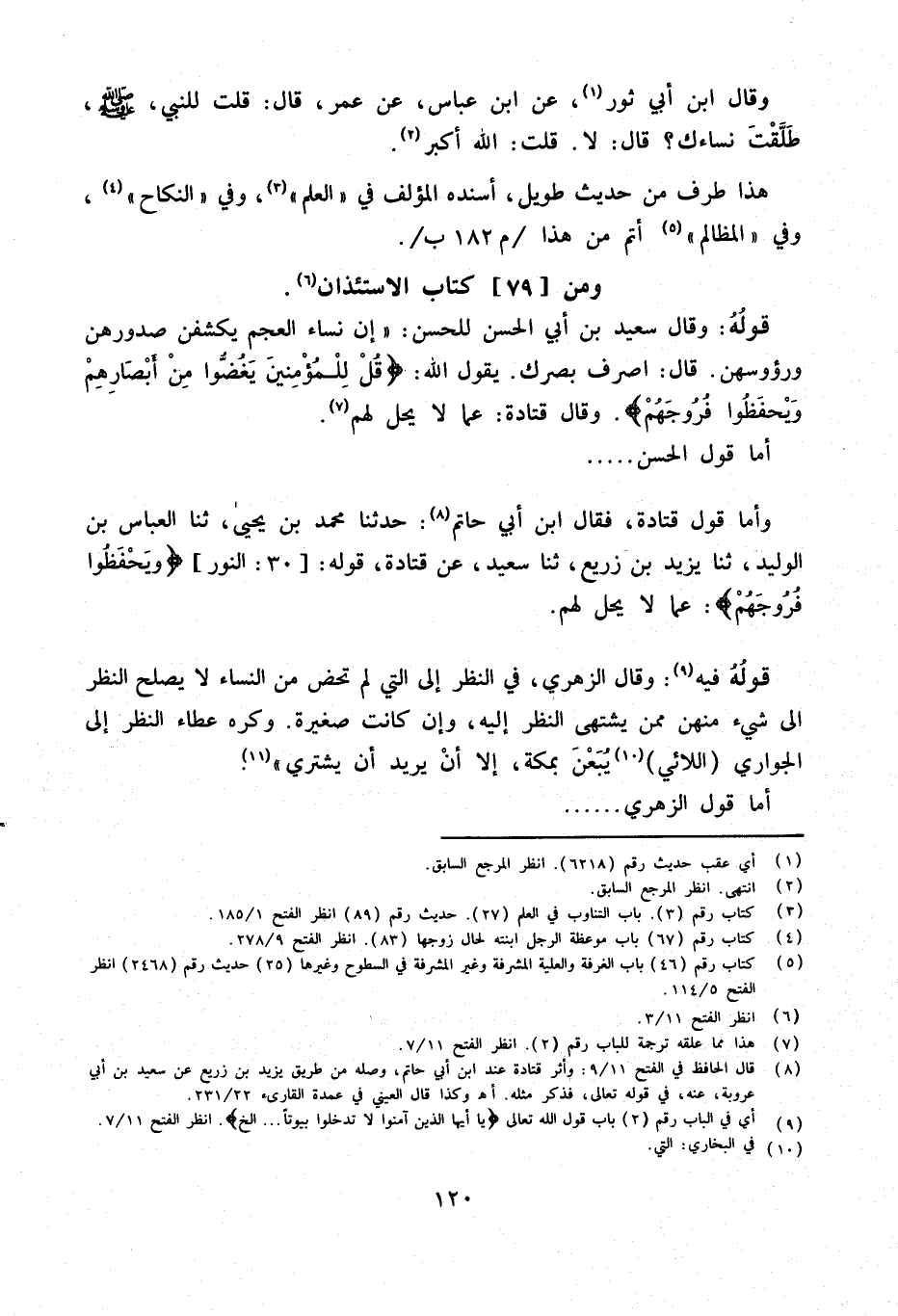 وَأما قَول قَتَادَة فَقَالَ ابْنُ أَبِي حَاتِم حَدثنَا مُحَمَّد بن يحيى ثَنَا الْعَبَّاسُ بْنُ الْوَلِيدِ ثَنَا يَزِيدَ بْنِ زُرَيْعٍ ثَنَا سَعِيدٌ عَن قَتَادَة قَوْله 30 النُّور {ويحفظوا فروجهم} عَمَّا لَا يحل لَهُم