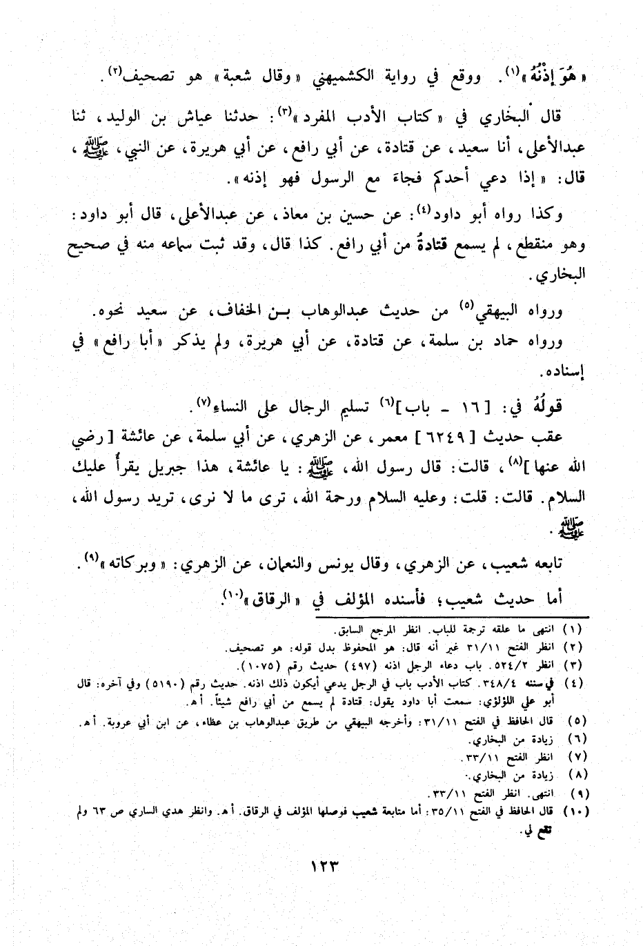 قَالَ البُخَارِيّ فِي كتاب الْأَدَب الْمُفْرد حَدَّثَنَا عَيَّاشُ بْنُ الْوَلِيدِ ثَنَا عَبْدُ الأَعْلَى أَنا سَعِيدٌ عَنْ قَتَادَةَ عَنْ أَبِي رَافِعٍ عَنْ أَبِي هُرَيْرَةَ عَنِ النَّبِيِّ صَلَّى اللَّهُ عَلَيْهِ وَسَلَّمَ قَالَ إِذَا دُعِيَ أَحَدُكُمْ فَجَاءَ مَعَ الرَّسُولِ فَهُوَ إِذْنُهُ