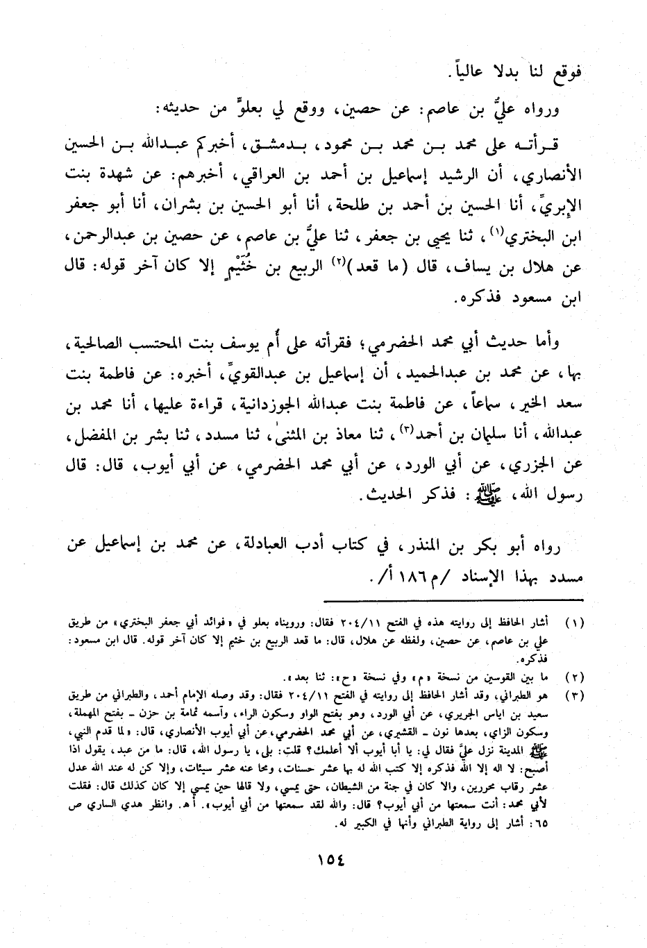 رَوَاهُ أَبُو بكر بن الْمُنْذر فِي كتاب أدب العبادلة عَن مُحَمَّد بن إِسْمَاعِيل عَن مُسَدّد بِهَذَا الْإِسْنَاد م 186 أ
