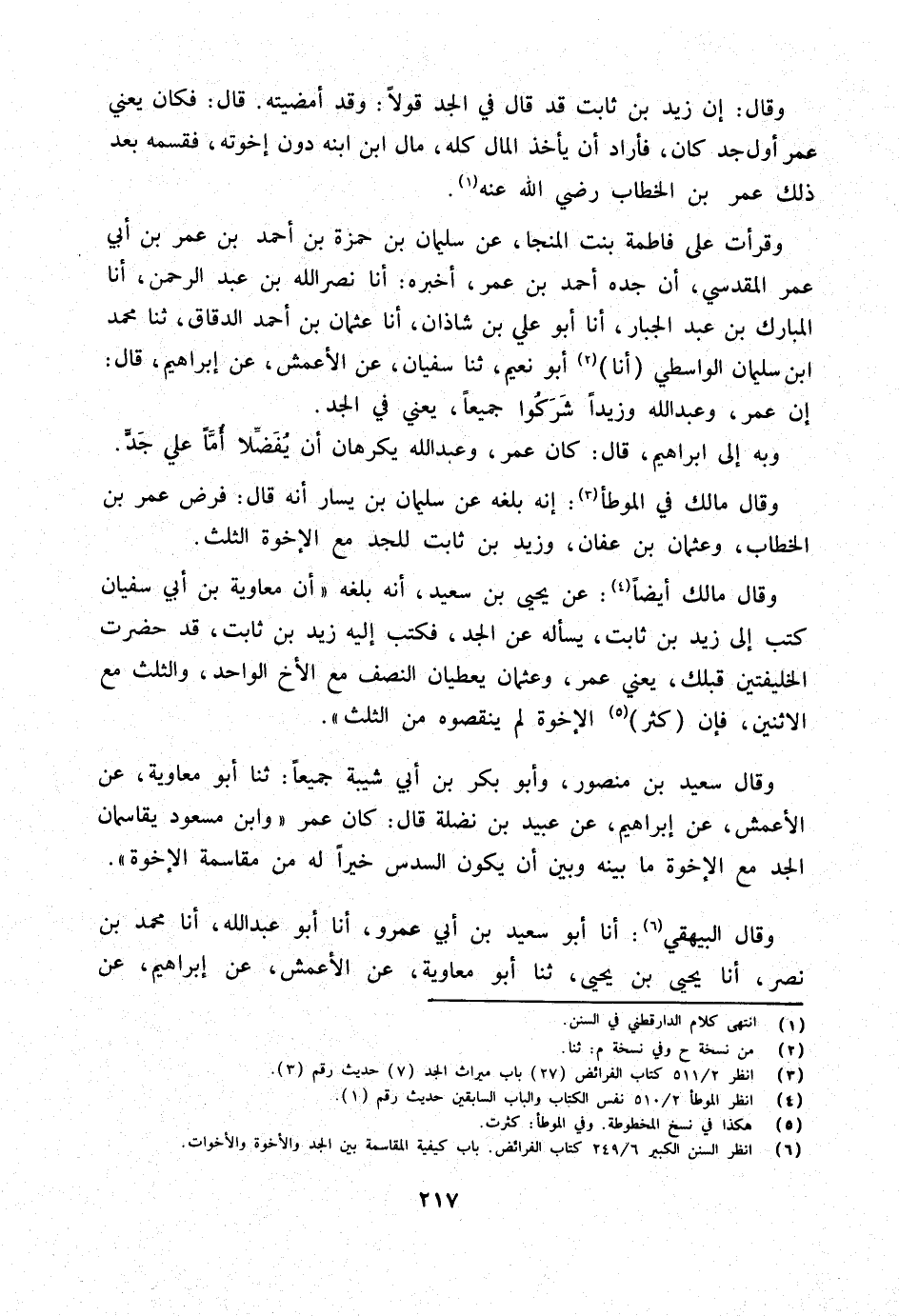 وَقَرَأْتُ عَلَى فَاطِمَة بنت المنجا عَن سُلَيْمَان بْنِ حَمْزَةَ بْنِ أَحْمَدَ بْنِ عُمَرَ بْنِ أَبِي عُمَرَ الْمَقْدِسِيِّ أَنَّ جَدَّهُ أَحْمَدَ بْنَ عُمَرَ أَخْبَرَهُ أَنا نَصْرُ اللَّهِ بْنُ عَبْدِ الرَّحْمَنِ أَنا الْمُبَارَكُ بْنُ عَبْدِ الْجَبَّارِ أَنا أَبُو عَلِيِّ بْنُ شَاذَانَ أَنا عُثْمَانُ بْنُ أَحْمد الدقاق ثَنَا مُحَمَّد ابْن سُلَيْمَانَ الْوَاسِطِيُّ أَنا أَبُو نُعَيْمٍ ثَنَا سُفْيَانُ عَنِ الأَعْمَشِ عَنْ إِبْرَاهِيم قَالَ إِن عمر وَعبد الله وزيدا شَرِكُوا جَمِيعًا يَعْنِي فِي الْجَدِّ